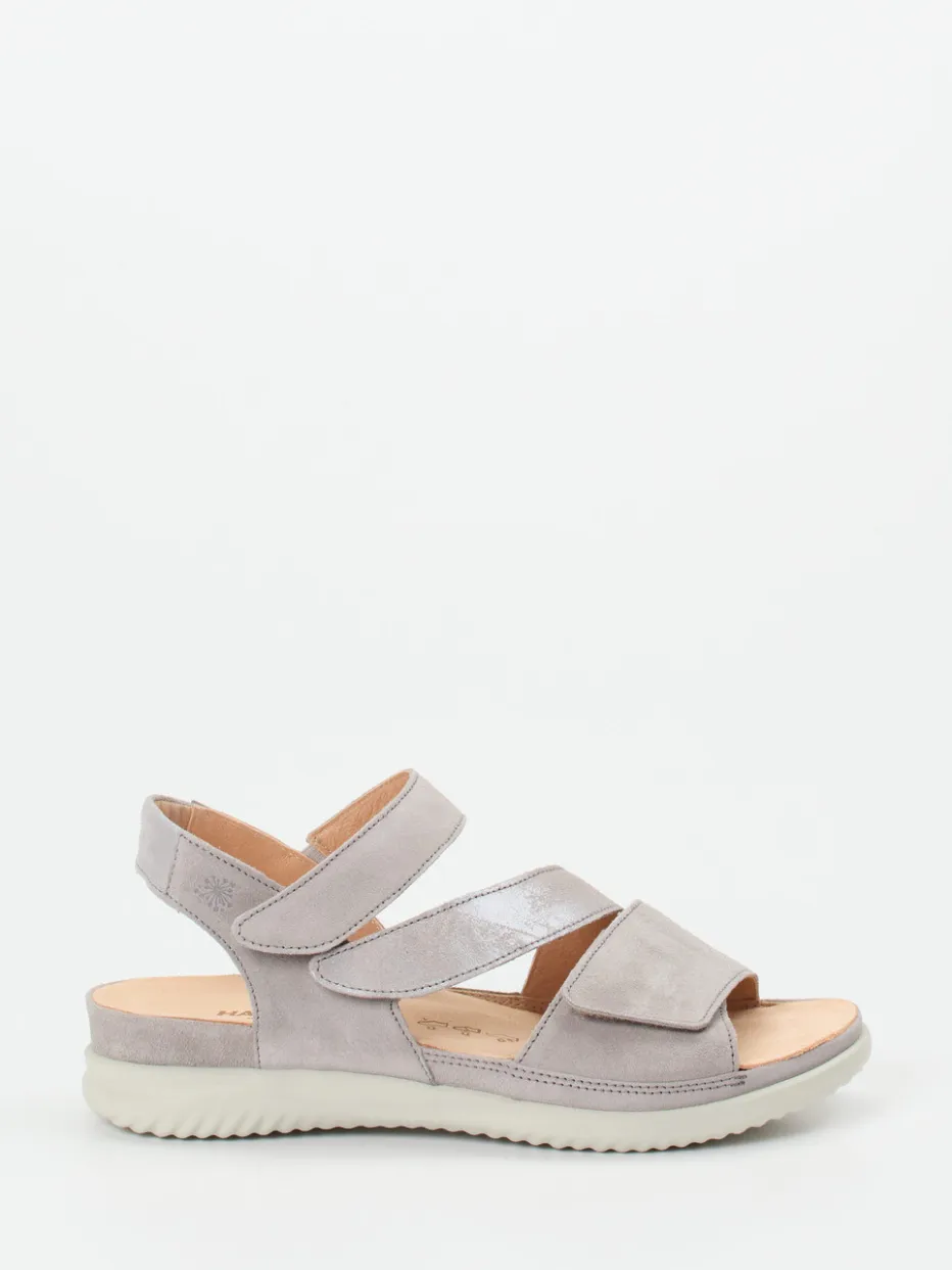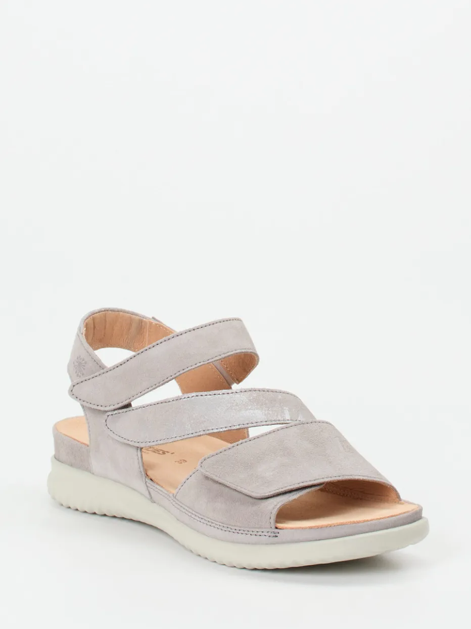 Diese Hartjes-Sandale vereint ergonomischen Komfort mit dezenten Glanzakzenten und bietet vielseitige Einstellmöglichkeiten für individuellen Sitz.