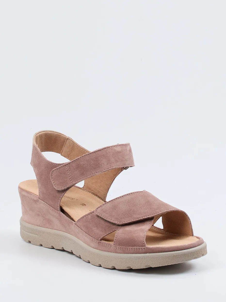 Perfekt für entspannte Tage im Freien überzeugt das Modell durch hochwertiges, samtig-mattes Veloursleder in Altrosa. Die offene, ergonomisch geschnittene Form mit einem Keilabsatz von 3 cm bietet angenehmen Halt – ergänzt durch verstellbare Klettverschlüsse für individuelle Anpassung. Ton-in-Ton-Nähte, profilierte Gummisohle und gepolsterte, lederbezogene Kork-Innensohle unterstreichen den komfortablen Charakter. Passend zur Soft-Neutrals-Trendpalette der Saison lässt sich die Sandale vielseitig zu Leinenstoffen oder leichten Sommerlooks tragen.