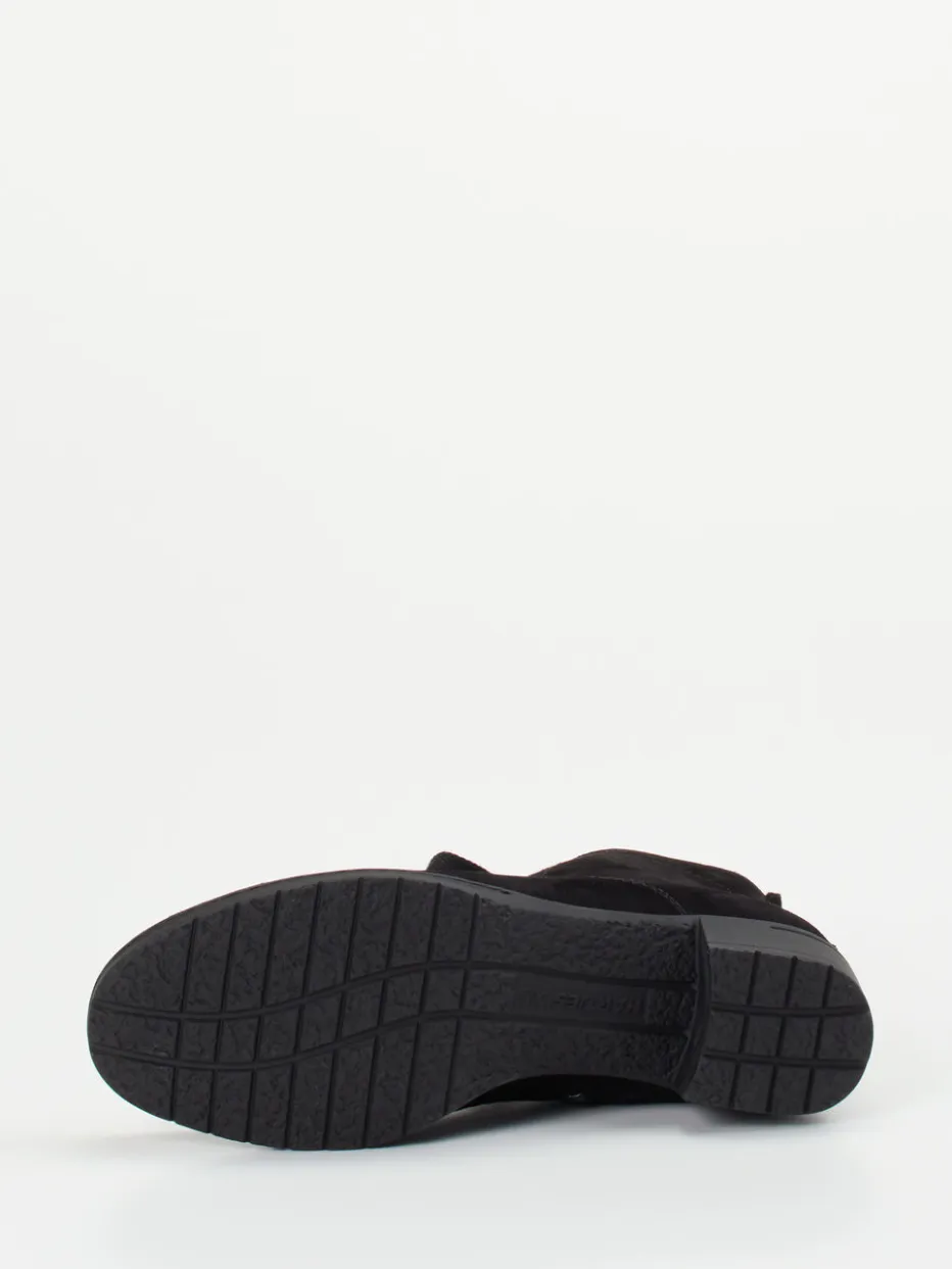 Diese klassisch gestaltete Stiefelette überzeugt mit einem weichen Veloursleder und einem komfortablen Blockabsatz – perfekt für stilvolle Alltagslooks mit dezentem Utility-Flair.