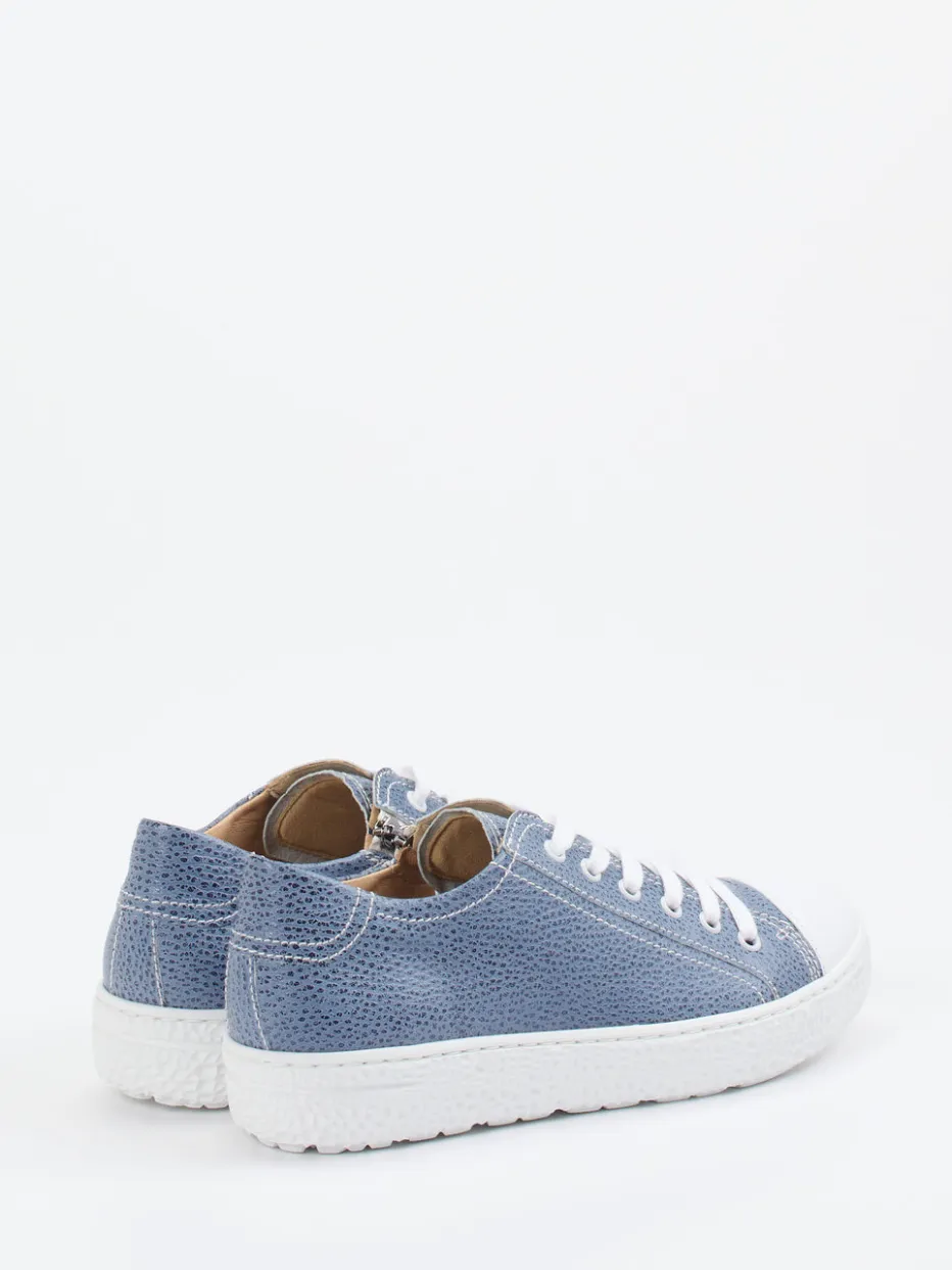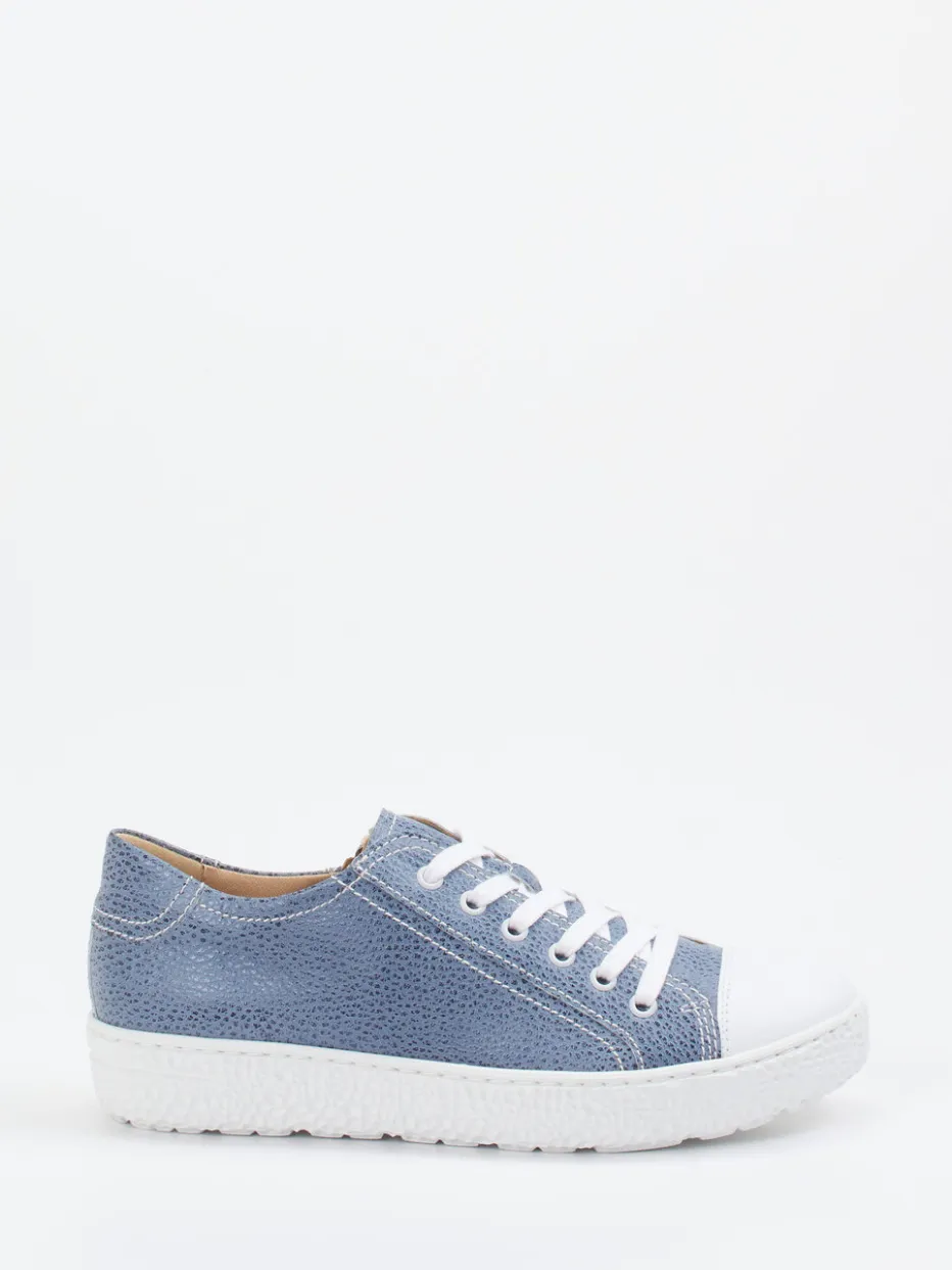 Dieser Hartjes-Sneaker vereint jeansblaues, geprägtes Leder mit funktionalen Details wie einem seitlichen Reißverschluss – ideal für Casual-Looks mit Komfortanspruch.