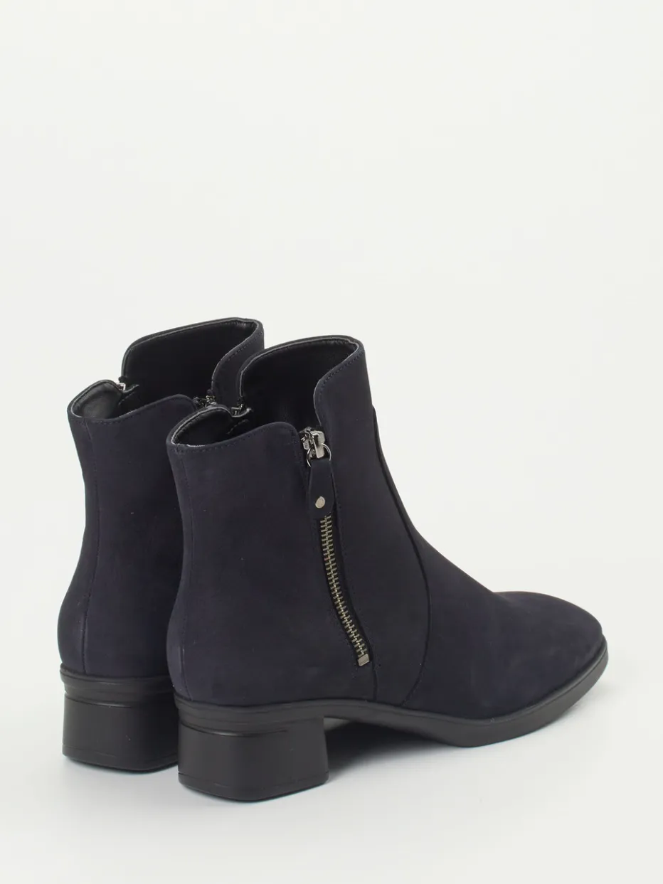 Elegant im Alltag, stilvoll im Büro.Die Marke Hartjes präsentiert mit dieser Stiefelette eine vielseitige Begleiterin für Alltag und Beruf. In dunklem Blau und aus hochwertigem Nubukleder gefertigt, das samtig angeschliffen wirkt, zeigt sich der Schuh klassisch knöchelhoch mit komfortablem Blockabsatz. Ein seitlicher Reißverschluss aus silberfarbenem Metall erleichtert das Anziehen, während die Gummisohle sicheren Halt bietet. Die schlichte Silhouette begeistert trendbewusste Trägerinnen, die Wert auf minimalistische Ästhetik und bequeme Passform legen. Ideal kombinierbar zu Wollmänteln oder Denim für einen ruhigen, urbanen Look. Hochwertige Verarbeitung und maximaler Komfort – typisch Hartjes.