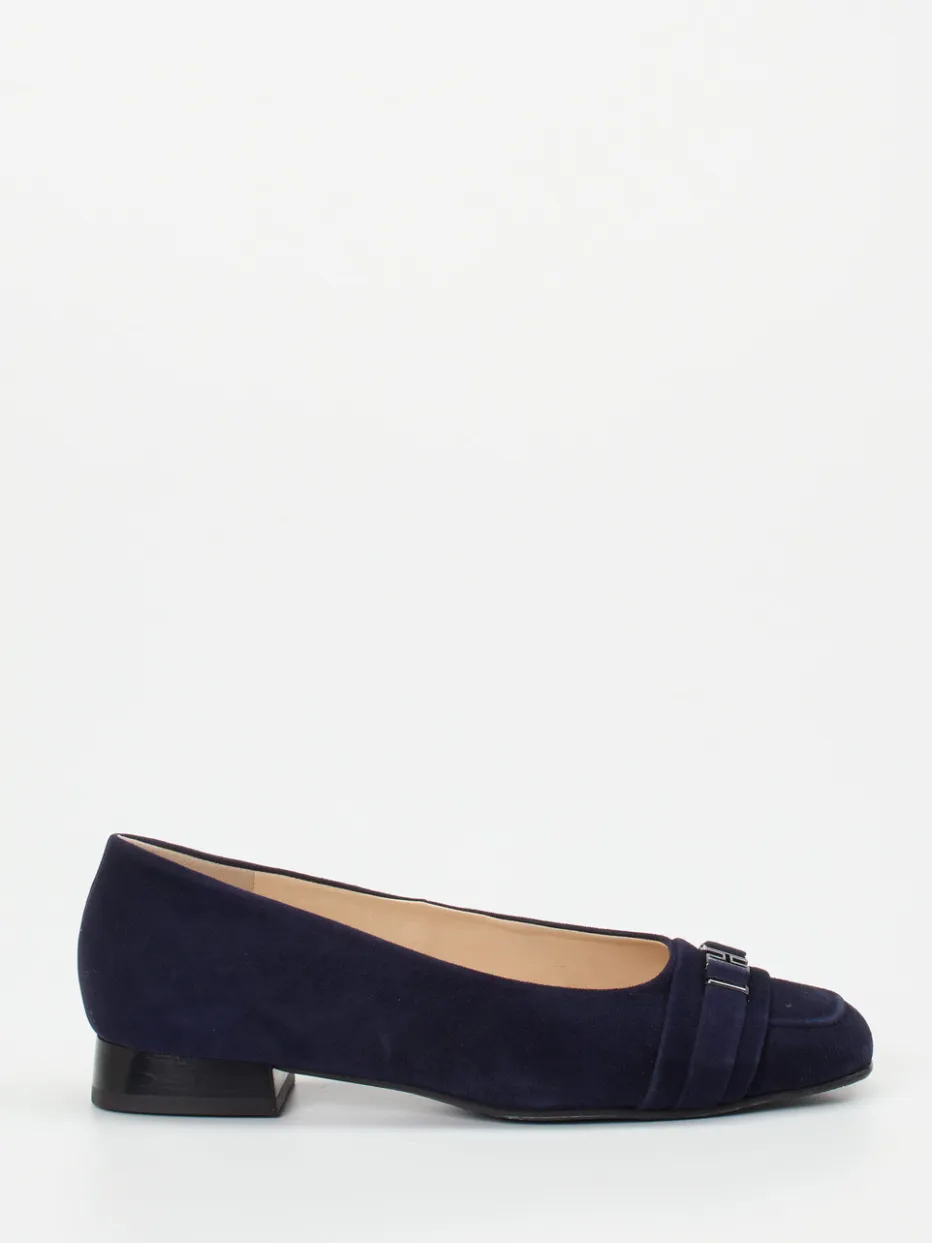 Klassische Eleganz trifft auf hohen Tragekomfort: Diese Ballerinas kombinieren samtiges Veloursleder mit schöner Silhouette und dezenter Metallverzierung – ideal für stilvolle Alltagslooks.