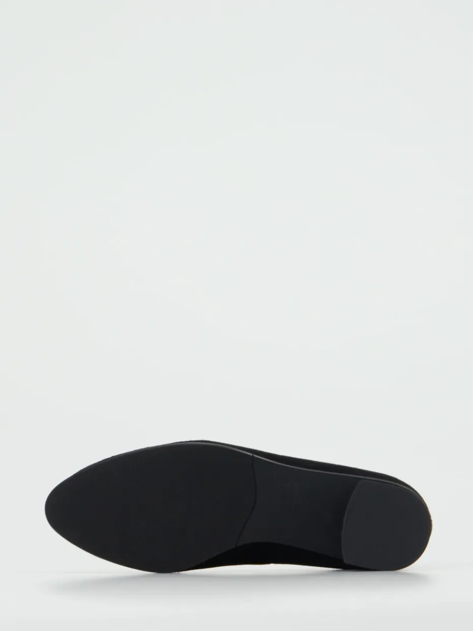 Vielseitigkeit für elegante Alltagssituationen.Hassia präsentiert klassische Damenpumps mit bequemer Weite H. Ideal für lange Tage im Büro oder stilvolle Anlässe, bestechen die Pumps durch hochwertiges, schwarzes Veloursleder mit samtig-matter Oberfläche. Die klar gerundete Silhouette, ein stabiler Blockabsatz mit alltagstauglicher Höhe sowie die schlanke Schlupfform unterstreichen den minimalistischen Charakter. Dezente Ton-in-Ton-Einfassungen sorgen für einen harmonischen Abschluss, während das gepolsterte, herausnehmbare Fußbett zusätzlichen Komfort bietet. Der Look integriert sich nahtlos in den „Quiet Luxury“-Trend und wirkt edel kombiniert zu Blazer und Ledertasche. Ein komfortstarker Favorit mit klarer Linienführung für stilbewusste Auftritte.