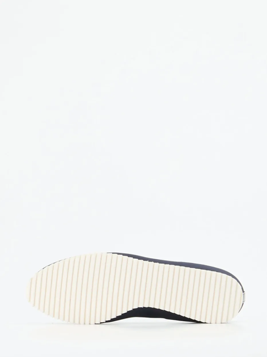Für lange Tage – kompromisslos bequem.Hassia präsentiert mit diesem Komfort-Loafer ein Damenmodell für Alltag und Büro. Bei längeren Laufwegen oder im Büroalltag punktet der Slipper durch sein stretchiges Textilmaterial in Neoprenoptik – angenehm soft und anschmiegsam. Der strukturierte Spannbereich ergänzt das monochrome Dunkelblau dezent, während die weiße Gummisohle mit blauer Linie dem Modell eine subtile Sportnote verleiht. Die leicht keilförmige Silhouette und das weich gepolsterte Lederfutter sorgen für Trageluxus bei jedem Schritt. Ideal kombinierbar mit schmalen Hosen oder eleganter Casual-Wear. Die bequeme Passform in Weite G und funktionale Details spiegeln den Komfortanspruch der Marke wider.