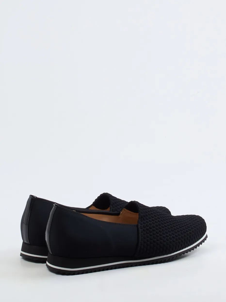 Struktur trifft Komfort.Hassia präsentiert mit diesem Komfort-Slipper eine gelungene Verbindung aus Modernität und Alltagstauglichkeit. Ideal für längere Tage unterwegs oder entspannte Stunden zu Hause: Das weiche Textil mit 3D-Wabenstruktur schmiegt sich elastisch an die Fußform an. Die schwarze Oberfläche wirkt durch subtile Mattheit und einen Lacklederstreifen hinten edel und dezent feminin. Ein elastischer Einstieg erleichtert das Anziehen, während das weich gepolsterte, herausnehmbare Fußbett individuell einsetzbar ist. Die profilierte Gummisohle mit weißem Kontraststreifen sorgt für Stabilität bei urbanem Minimalismus. Lässt sich hervorragend mit Stretch-Jeans oder Strick kombinieren. Hassia steht für anspruchsvollen Tragekomfort in stilbewusster Ausführung.