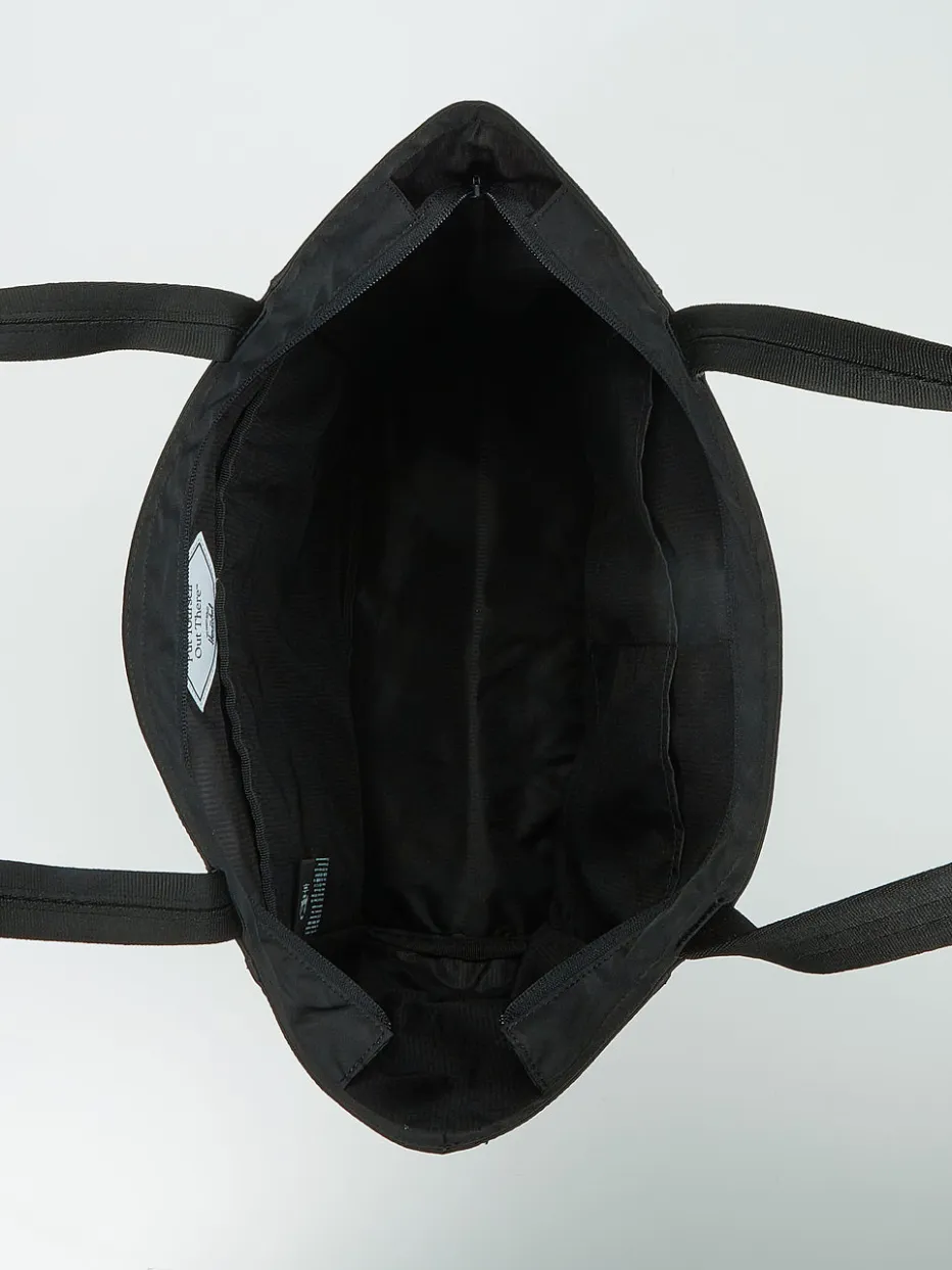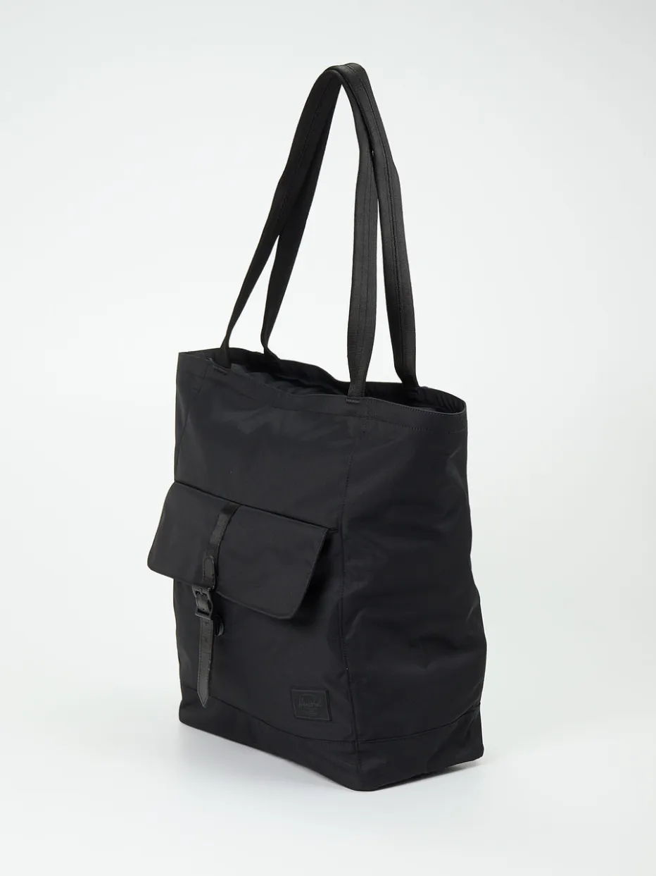 Urbaner Chic trifft auf Funktionalität: Der schwarze Herschel-Shopper überzeugt mit nachhaltigem Material, klarer Form und praktischen Details für Alltag und Büro.