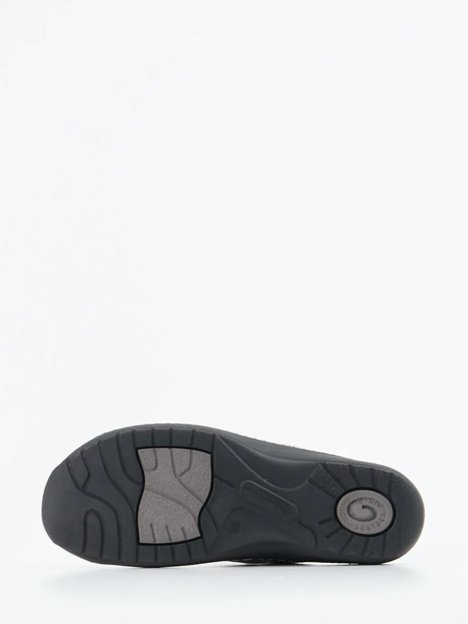 Diese halluxgeeignete Pantolette überzeugt mit ergonomischer Form, glänzenden Details und flexibler Komfortweite – ideal für sensible Füße mit Anspruch an Stil und Funktion.