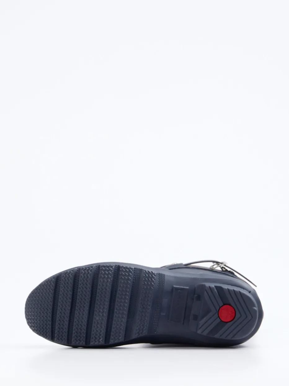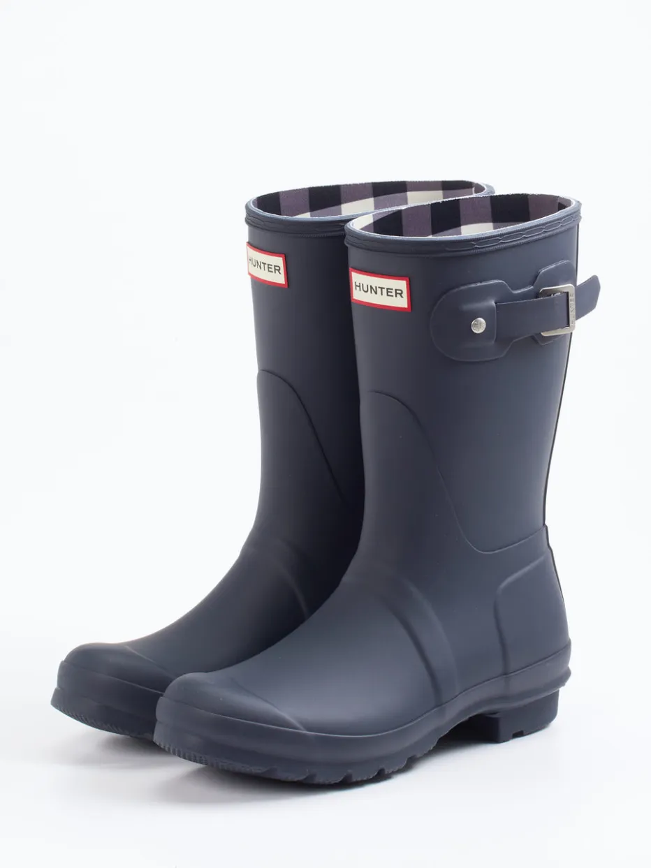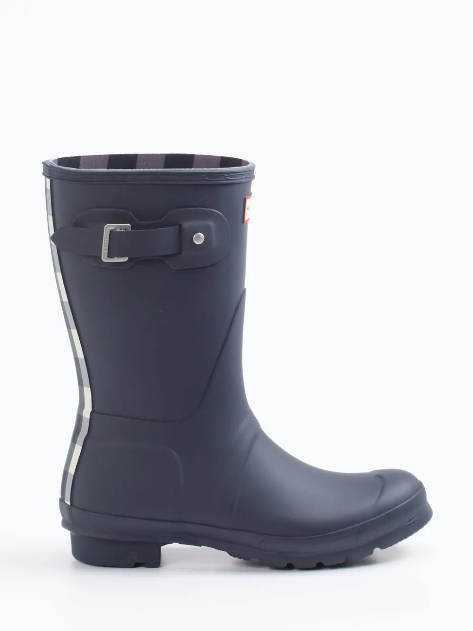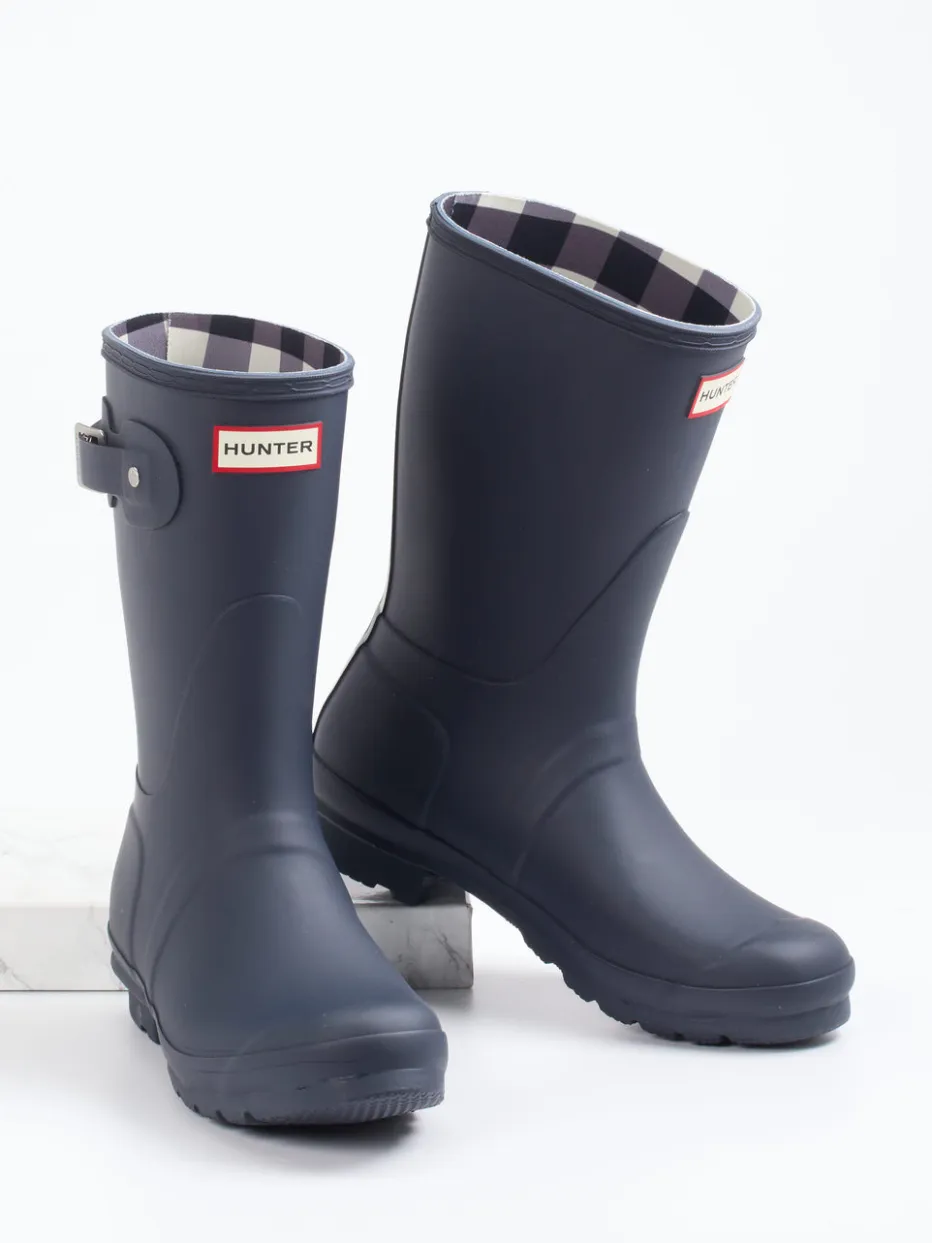 Stilsicher durch jedes Regenwetter.Hunter präsentiert einen Gummistiefel für Damen – funktional und markentypisch detailverliebt. Ideal für Spaziergänge bei Nässe oder Gartenarbeit: Das Modell besteht aus wasserfestem Synthetik mit matter Oberfläche. Ein kariertes Textilfutter bringt visuelle Tiefe, während eine silberfarbene Metallschnalle und die gerade Schaftform für stabilen Sitz sorgen. Die griffige Profilsohle bietet rutschfeste Trittsicherheit. Die Schlupfform mit verstellbarer Lasche rundet den Outdoor-Look praktisch ab. Dunkelblau mit Kontrastdetails trifft auf britischen Utility-Chic. Ein langlebiger Klassiker für stilvollen Wetterschutz.