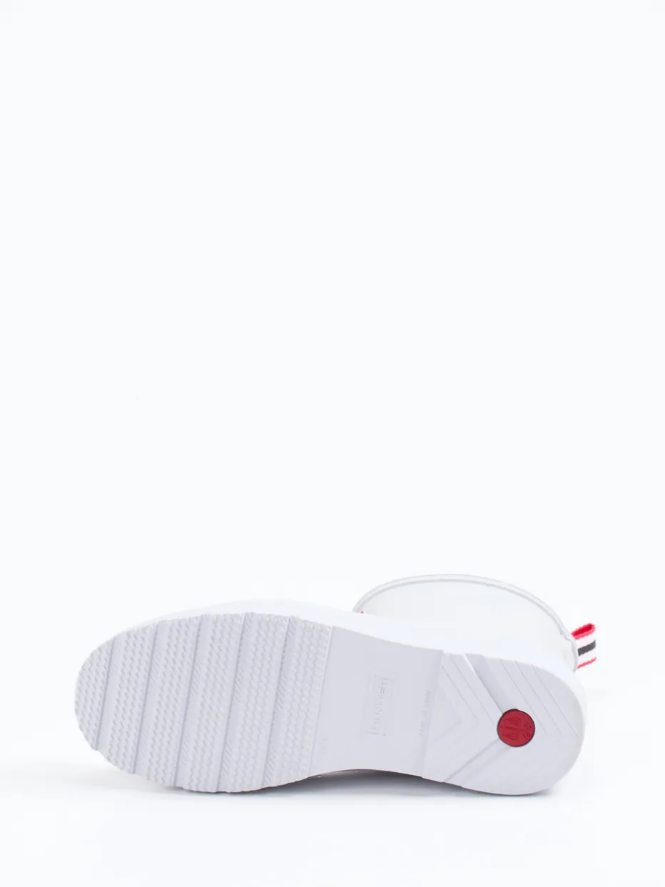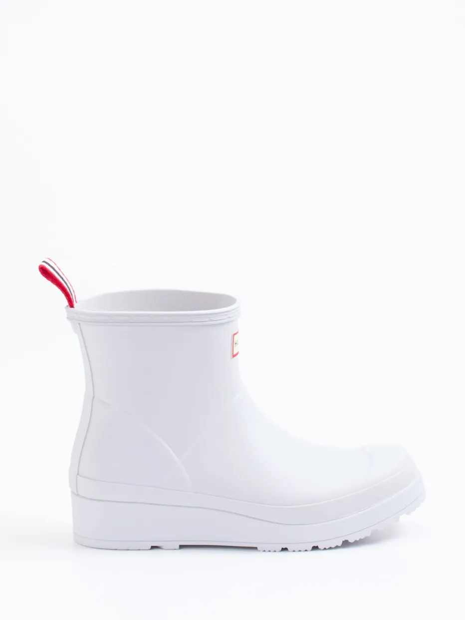 Stilvoll geschützt bei jedem Regenschauer.Hunter interpretiert den klassischen Damen-Kurzschaft-Gummistiefel modern und funktional. Für kurze Wege im Regen oder Spaziergänge bei Schmuddelwetter designt, kombiniert dieses Modell strapazierfähiges weißes Synthetikmaterial mit einer griffigen Gummisohle. Die mattierte Oberfläche unterstreicht die klar geradlinige Silhouette und betont den minimalistischen Look. Farbige Akzente wie das rot-schwarze Logo und die gleichfarbige Fersenschlaufe setzen markentypische Highlights. Die Schlupfform erleichtert den Einstieg, während das Textilfutter innen angenehm weich wirkt. Inspiriert von Modern Rainwear und Utility-Wear, ist der Schuh eine stilbewusste Wahl für funktionale Freizeitlooks. Markentypische Ästhetik trifft wetterfeste Alltagstauglichkeit.