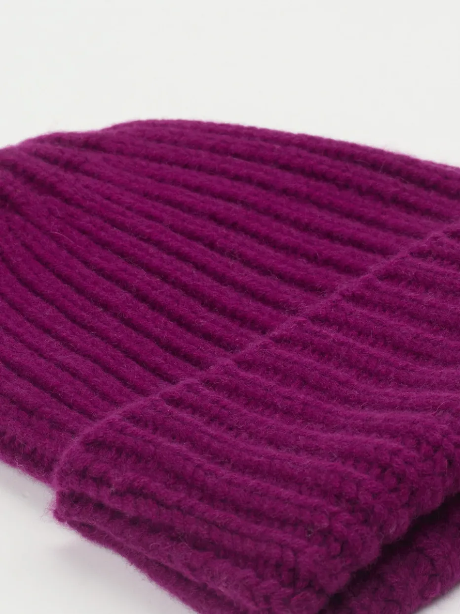 Die Strickmütze aus reinem Kaschmir vereint luxuriöse Weichheit mit aktueller Color-Pop-Ästhetik. Ideal für moderne Winterlooks mit kuscheligem Flair.