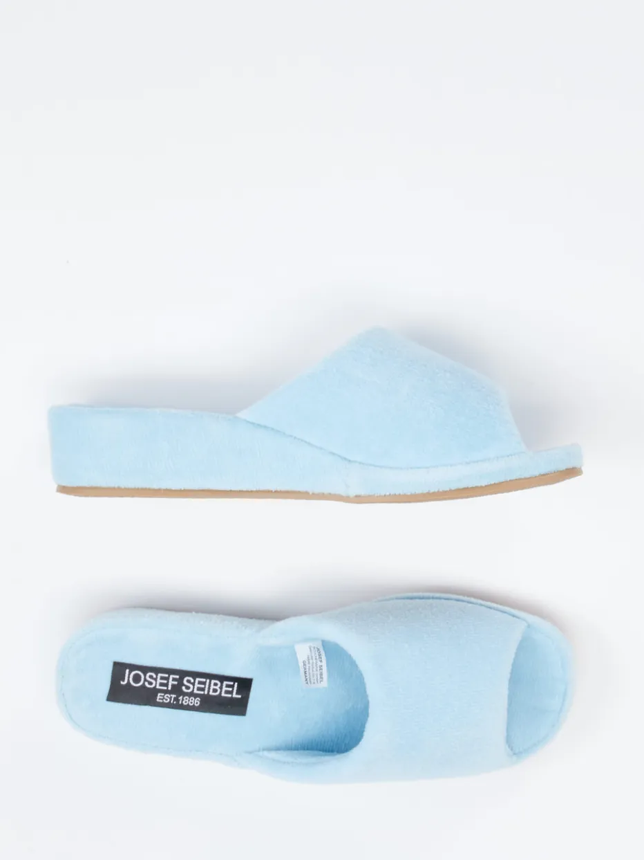 Entspannung mit Stil.Josef Seibel Relax setzt mit dieser hellblauen Damen-Pantolette auf Komfort und Leichtigkeit. Ob beim entspannten Frühstück oder nach einem langen Tag – das weiche Textil mit flauschiger Frottee-Struktur sorgt für ein sehr angenehmes Tragegefühl. Durch die offene Zehenpartie, den unkomplizierten Schlupfeinstieg und die gepolsterte Innensohle bietet das Modell eine bequeme Passform. Die leichte Keilsohle mit rutschfester Gummilaufsohle federt jeden Schritt sanft ab und unterstützt den Loungewear-Trend der Saison. Die Ton-in-Ton Gestaltung unterstreicht den puristischen Stil. Ein durchdachtes Wohlfühlprodukt mit spürbarer Qualität von Josef Seibel.