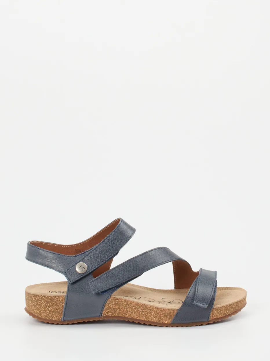 Komfort trifft Natürlichkeit.Die stahlblauen Sandalen von Josef Seibel vereinen Minimalismus mit Komfort. Ideal für entspannte Sommertage, bieten sie hohen Tragekomfort dank ergonomischem Fußbett aus Kork und einer rutschhemmenden Gummisohle. Fein genarbtes Kalbleder in gedecktem Blau und verstellbare Klettverschlüsse sorgen für eine individuelle Passform. Der offene Schnitt mit ergonomischer Silhouette ermöglicht ein angenehmes Fußklima – perfekt für Alltag, Urlaub oder Zuhause. Optische Akzente wie der Logo-Knopf aus Metall unterstreichen das funktionale Design mit stilvoller Note. Der Mix aus Naturmaterialien und durchdachter Formenführung macht dieses Modell zu einem zeitgemäß bequemen Stilpartner mit Josef-Seibel-Charakter.
