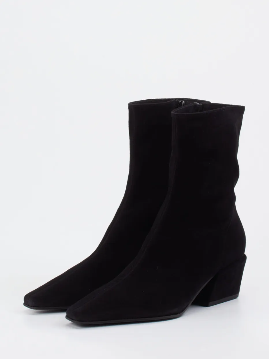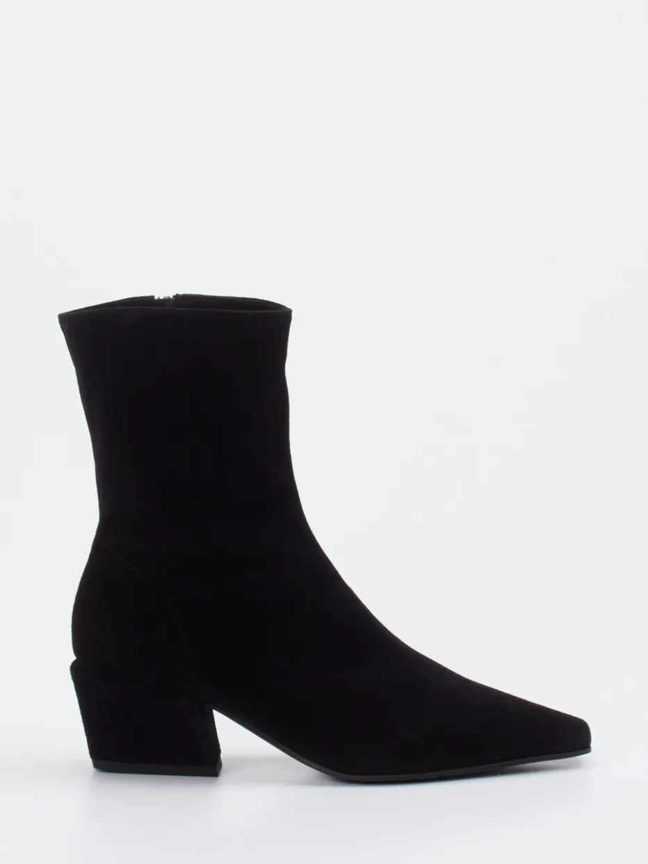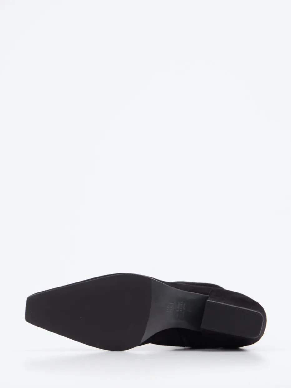 Die spitz zulaufende Form trifft auf hochwertiges Veloursleder in tiefem Schwarz – ein stilvoll-minimalistischer Boot mit Vintage-Anklängen für vielseitige Looks.