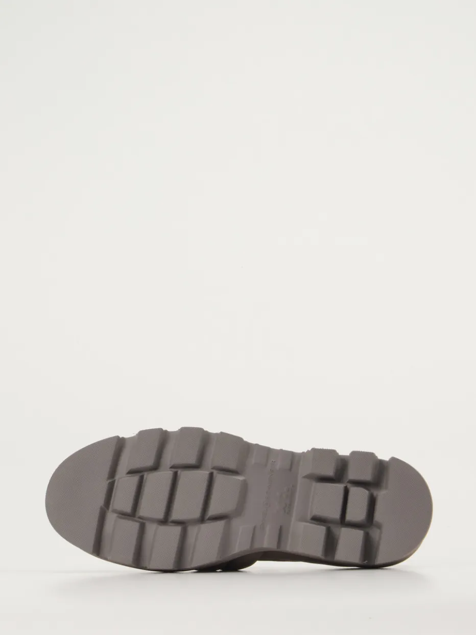 Quiet Luxury trifft urbanen Komfort.Kennel & Schmenger präsentiert diesen trendstarken Loafer für Damen. Ideal für anspruchsvolle Alltagsmomente im Büro oder in der City: Das Modell kombiniert fein angeschliffenes Nubukleder mit matter Oberfläche in einem modischen Taupe-Grau. Die klassisch gehaltene Form wird durch die chunky Leichtzellsohle mit grobem Profil dynamisch akzentuiert. Besonders ins Auge fällt das Knotendetail mit silberfarbenem Metallring, das subtile Wertigkeit vermittelt. Die praktische Schlupfform und das weiche Ziegenlederfutter sorgen für ein angenehmes Tragegefühl. Stilistisch bewegt sich der Schuh zwischen Streetwear-Ästhetik und dem „Quiet Luxury“-Trend. Ein Zumnorde-Favorit für reduzierten Chic mit funktionaler Raffinesse.