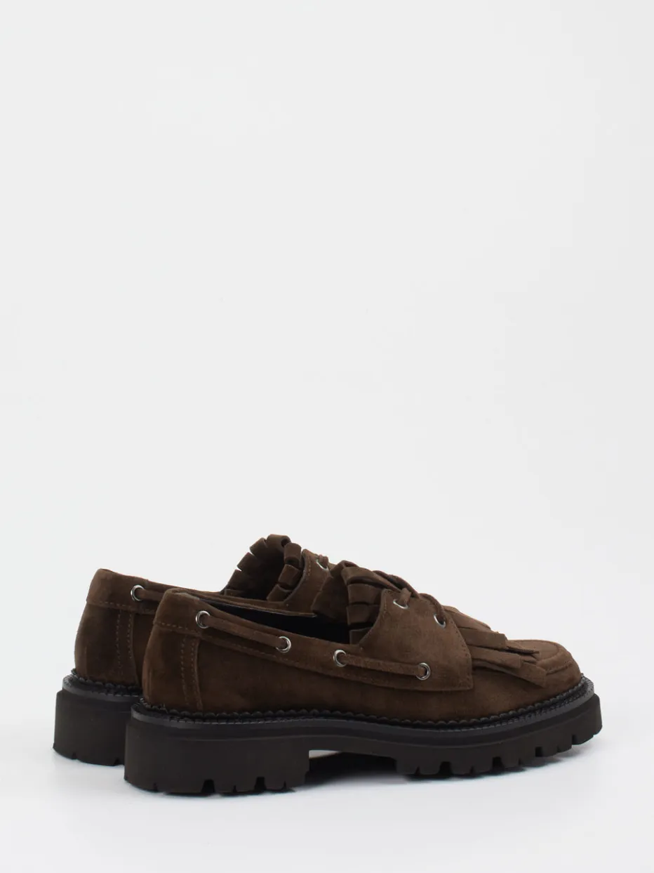 Samtiges Veloursleder, eine moderne Fransenlasche und die betont robuste Chunky-Sohle machen diesen Loafer zum stilistisch souveränen Begleiter für urbane Looks.