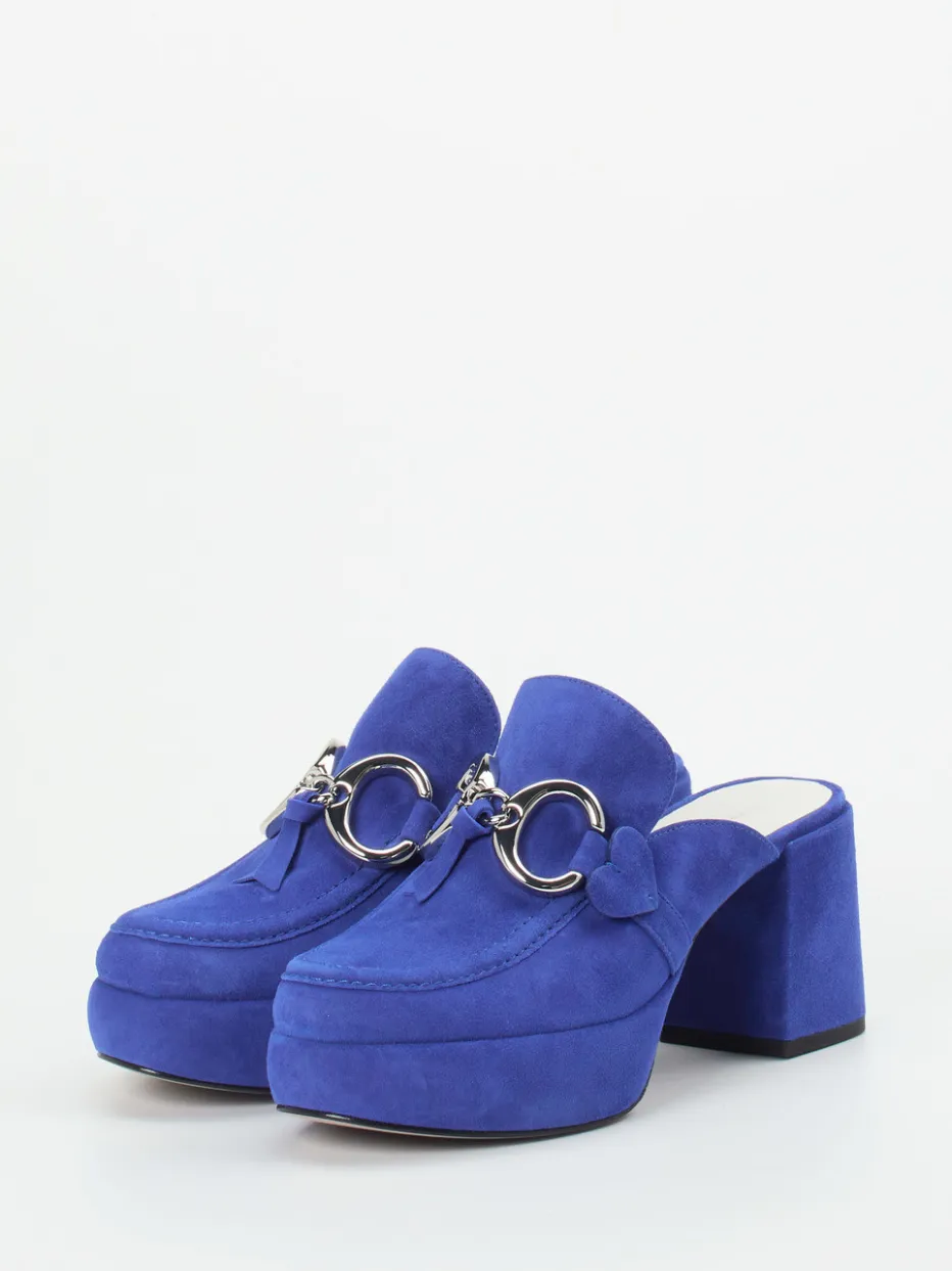 Für besondere Momente mit Stil.Kennel & Schmenger interpretiert Plateau-Mules in azurblauem Veloursleder auf moderne Art. Ob zum abendlichen Ausgehen oder als modisches Statement im Alltag – die Kombination aus samtigem Veloursleder, kobaltblauer Farbgebung und dekorativer Metallspange mit Herz-Detail wirkt stilsicher und ausdrucksstark. Das blockförmige Design mit 7 cm hohem Absatz auf 3 cm Plateau verleiht Präsenz und Komfort. Eine profilierte Ledersohle sorgt für angenehmes Tragegefühl. Inspiriert vom Vintage-Stil der 70er und dem aktuellen Platform-Trend lassen sich die Mules ideal mit Schlagjeans oder Metallic-Accessoires kombinieren. Ein charakterstarkes Modell mit klarer Trendansage in typischer Kennel & Schmenger Qualität.