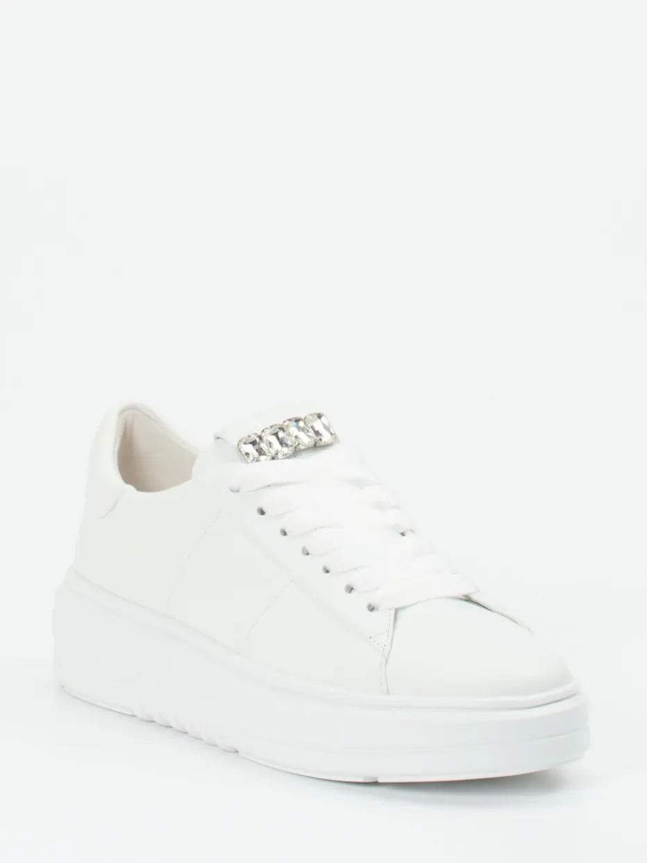 Puristischer Akzent für trendbewusste Styles.Kennel & Schmenger bringt mit diesem Damen-Plateau-Sneaker ein Modell, das minimalistisches Design und modischen Glamour kombiniert. Ob für das Streetstyle-Outfit oder den Kultursamstag in der City – das weiße, mattes Kalbleder verleiht dem Sneaker eine klare, hochwertige Ausstrahlung. Eyecatcher ist die silberfarbene Schmuckkette auf der Zunge, flankiert von breiten, tonalen Schnürbändern. Die markante Plateausohle unterstreicht den chunky Charakter und greift aktuelle Modeimpulse auf. Innen sorgen Lederfutter und ein gepolstertes Fußbett für Komfort. Ein Design-Highlight für minimalistischen Chic und stilbewusste Alltagslooks.
