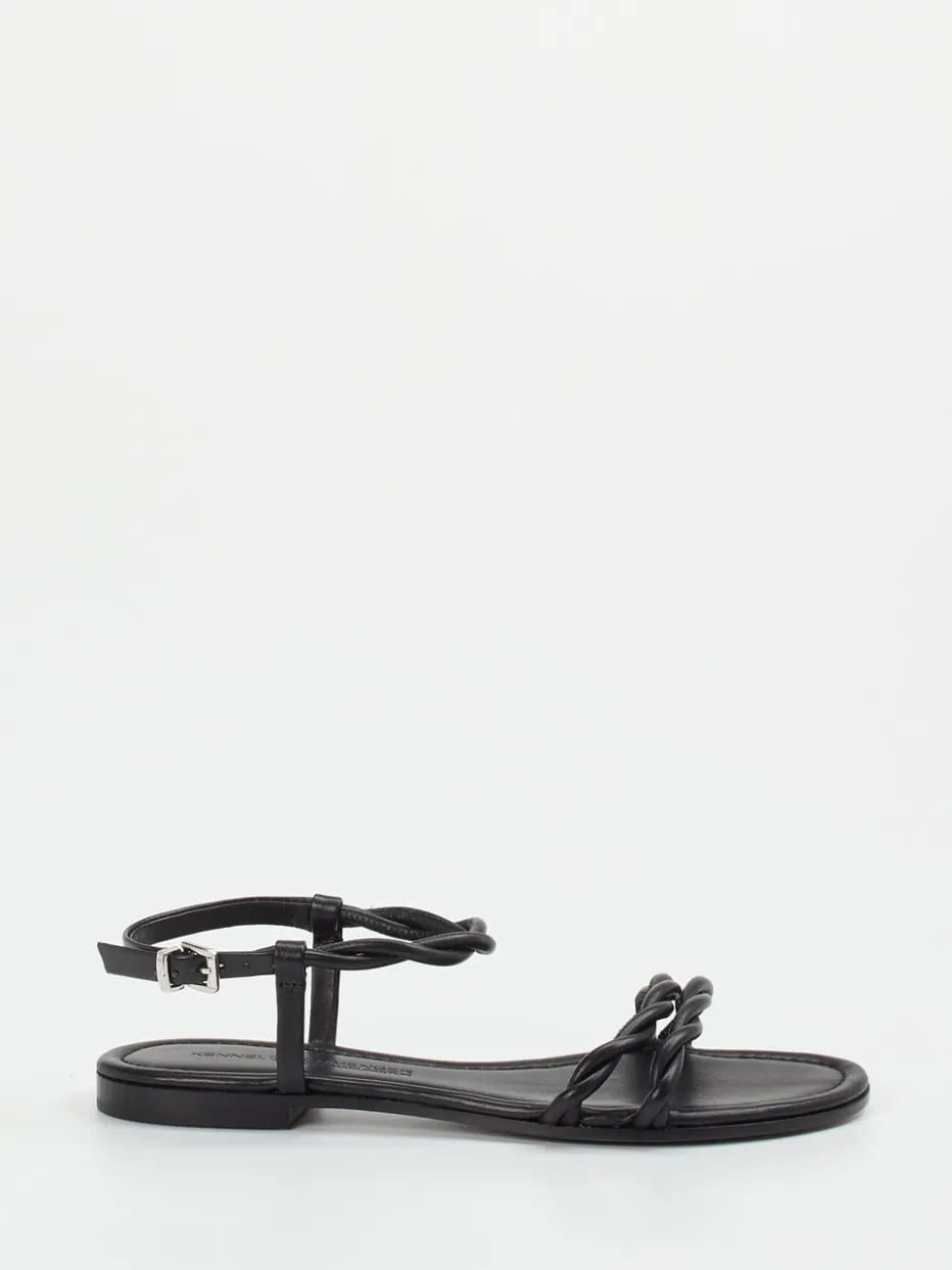 Feiner Minimalismus für warme Tage.Kennel & Schmenger präsentiert eine feminine Riemchensandale mit klarer Formensprache. Ideal für Reisen, Stadtbummel oder entspannte Tage im Freien erfüllt das schwarze Lammleder selbst gehobene Ansprüche an Komfort und Stil. Die mattierte Oberfläche, silberfarbene Schnalle und geflochtenen Riemen setzen dezente Akzente in flacher Silhouette. Ein Ziegenlederfutter und das weiche Fußbett erhöhen den Komfort, während die Ledersohle mit Holzoptik-Absatz urban inspiriert wirkt. Gefertigt für Looks im Zeichen von Quiet Luxury und mediterranem Chic. Gut kombinierbar mit luftigen Kleidern oder Leinen-Pieces. Ein Zumnorde-Schuh für gehobene Leichtigkeit mit moderner Aussage.