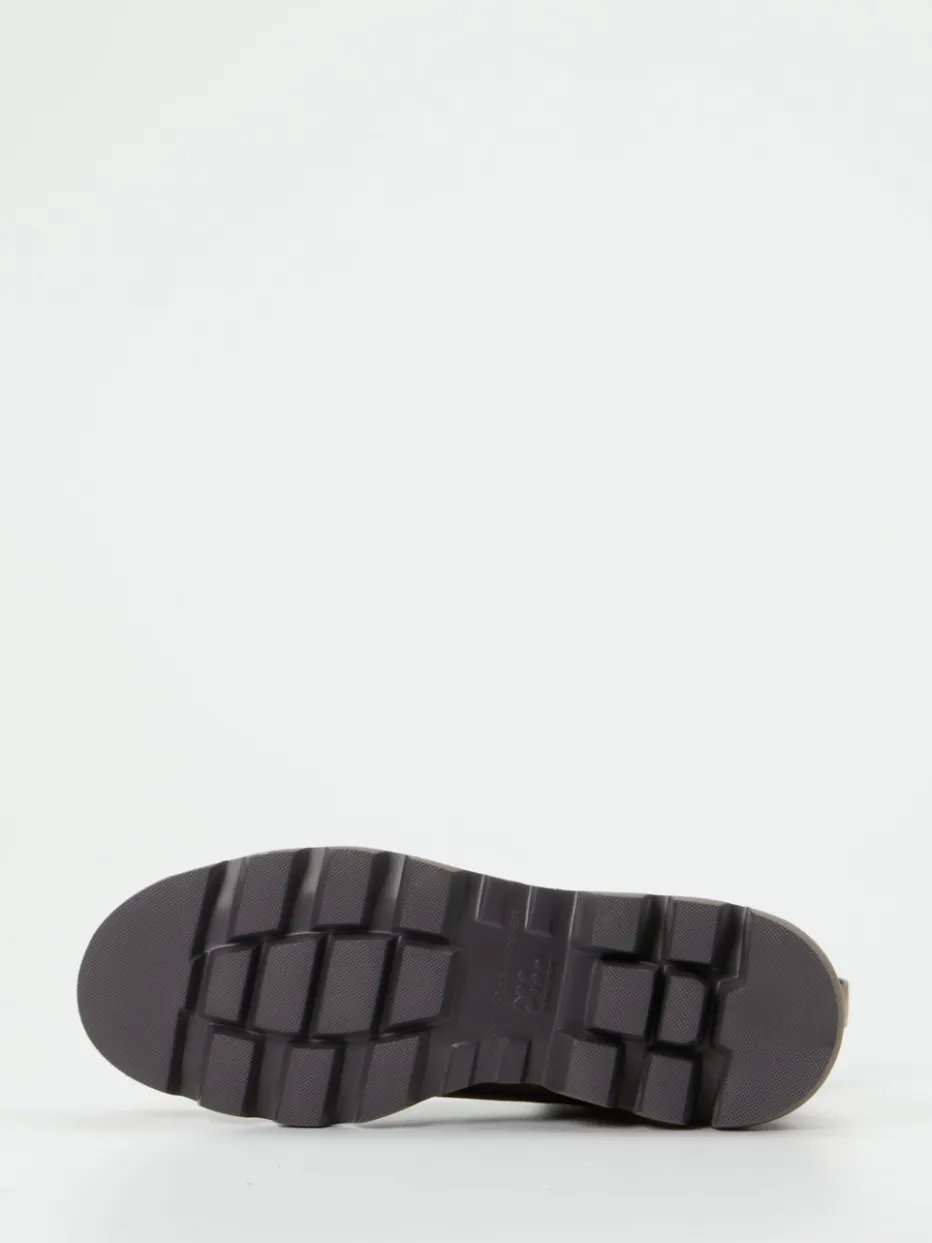 Die robuste Schnürstiefelette überzeugt mit samtigem Nubukleder und detailverliebtem Nietenbesatz – ein stilsicheres Statement zwischen Utility-Trend und urbaner Eleganz.