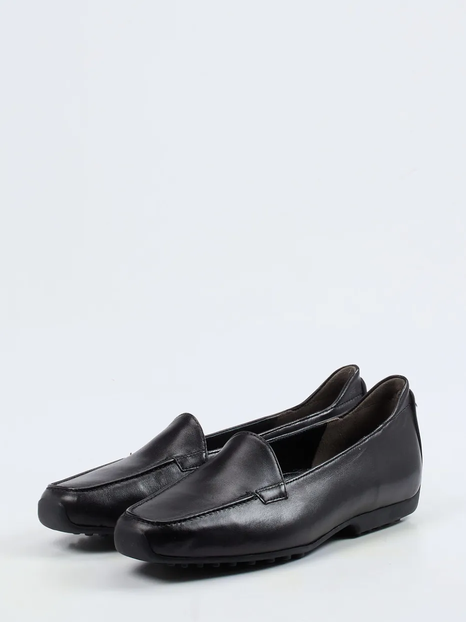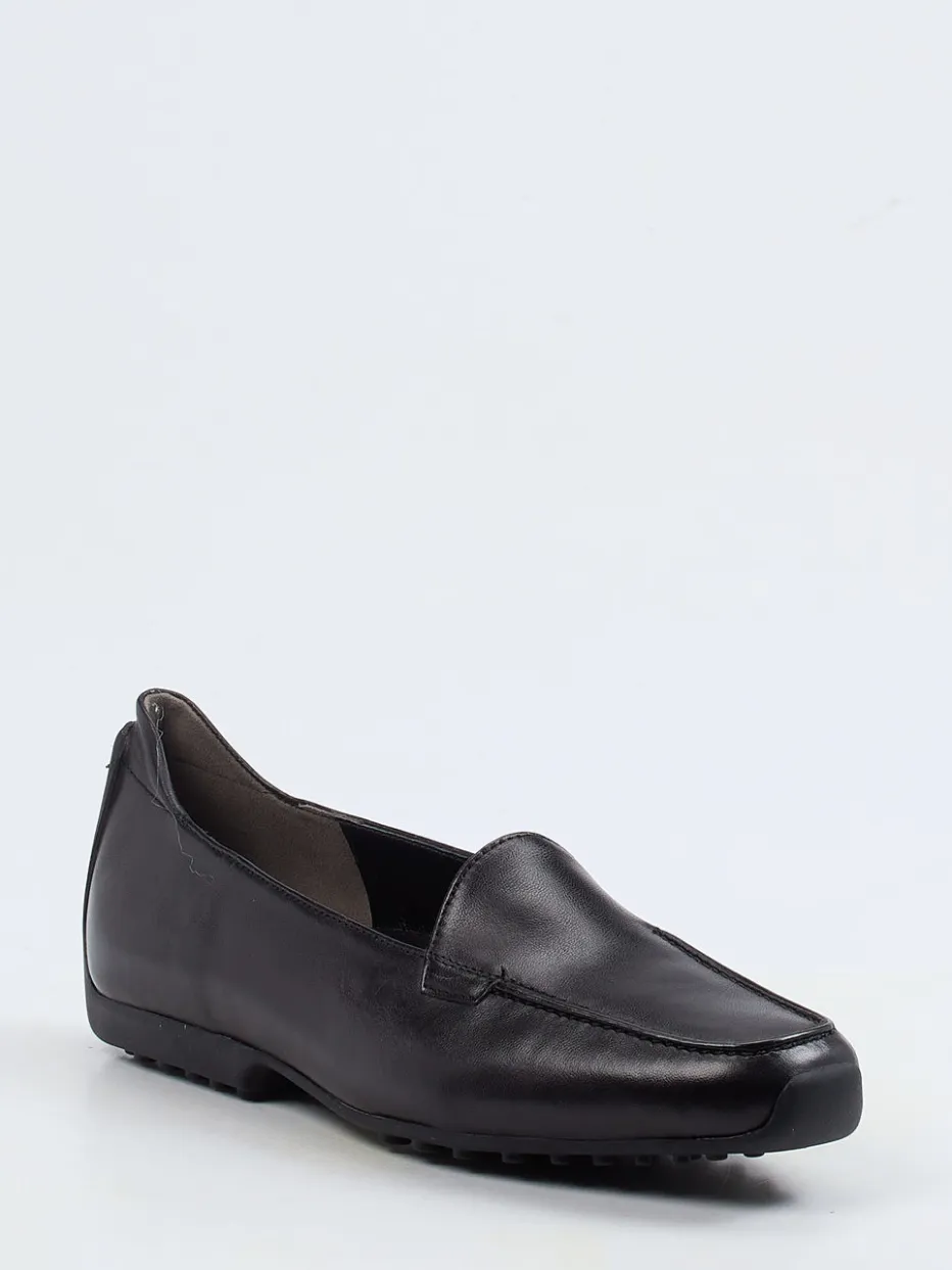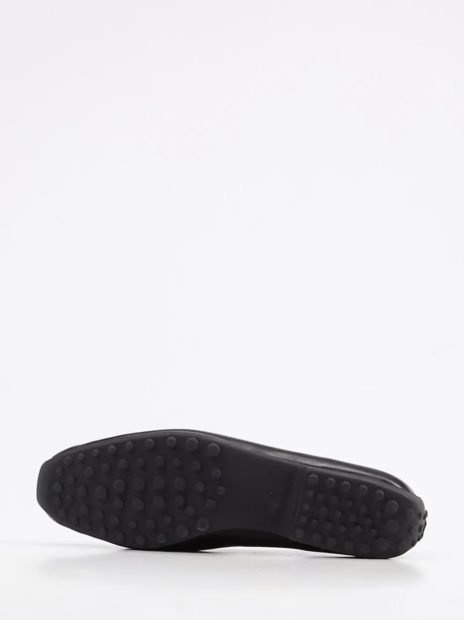 Schon fast ein Klassiker ist dieser Slipper der Firma Kennel & Schmenger. Auf der Carréform wirkt der schlichte Mokassin in dem weichen, schwarzen Nappaleder sehr hochwertig. Das Leder hat einen schönen Glanz. Die schwarze, genoppte Gummisohle ist im Stil der Autofahrersohlen an der Ferse hochgezogen. Dieses Detail vermittelt die notwendige Sportlichkeit und gibt einen Hinweis auf die Bequemlichkeit dieses Slippers.