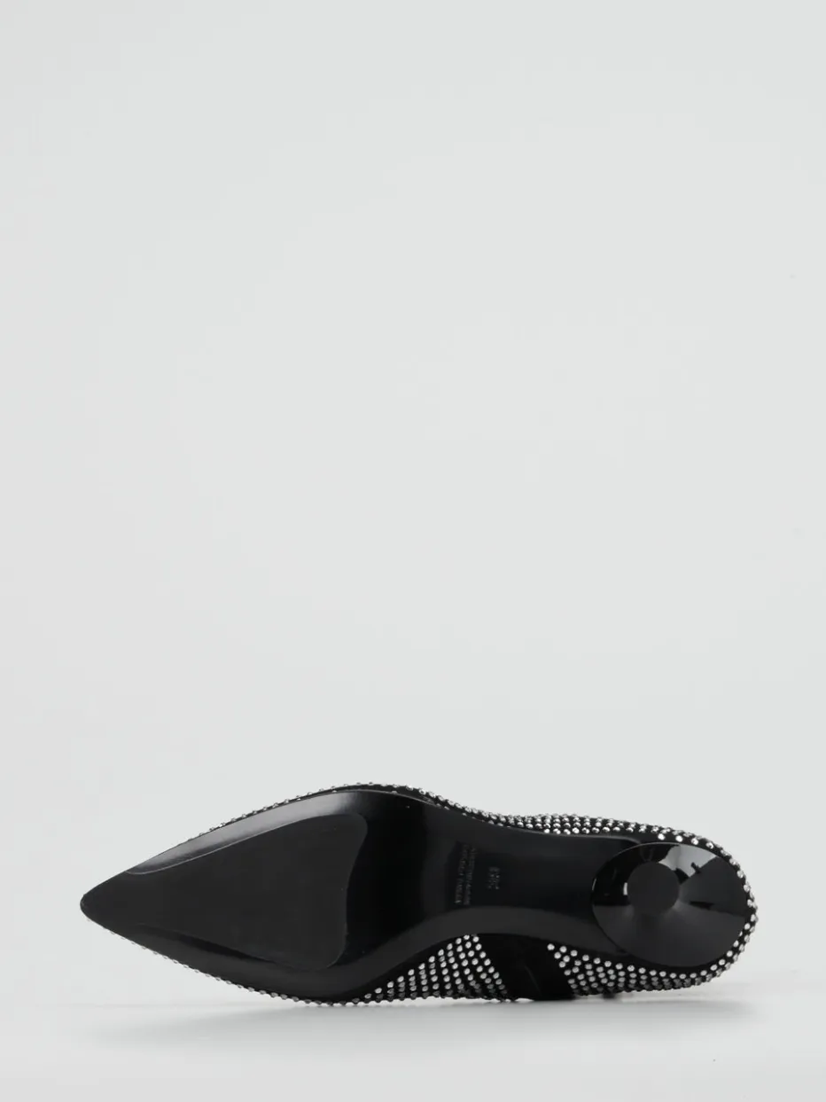Die Kombination aus schwarzem Metallic-Material und vollständig aufgesetzten Strasssteinen sorgt für ein funkelndes Erscheinungsbild. Die taillierte Silhouette mit spitz zulaufender Zehenpartie und der schmale Kitten Heel unterstreichen den femininen Look. Ein seitlicher Reißverschluss ermöglicht komfortables An- und Ausziehen. Inspiriert vom Party Glam Revival greift das Modell aktuelle Sparkle-Trends auf und passt perfekt zu eleganten Abend-Outfits oder modernen Y2K-Kombinationen. Styling-Tipp: mit Glitzer-Clutch und Statement-Ohrringen vervollständigen.