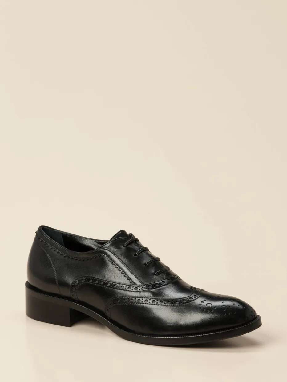 Dieser Brogue interpretiert klassische Herrenschuhästhetik mit femininem Feinschliff – gefertigt aus handschuhweichem Lammleder und veredelt mit filigraner Lyralochung.