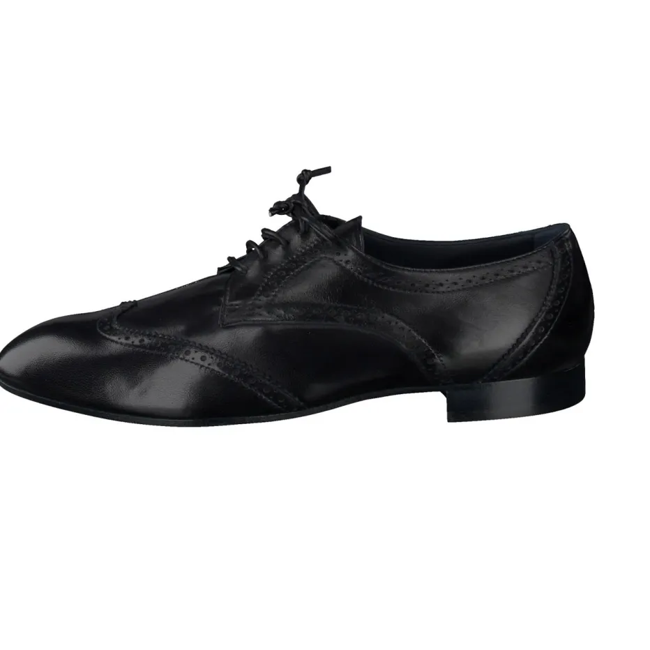 Dieser Damen-Budapester kombiniert weiches Lammleder mit feiner Brogue-Lochung und flacher Silhouette – ideal für elegante Office-Looks und moderne Tailoring-Trends.