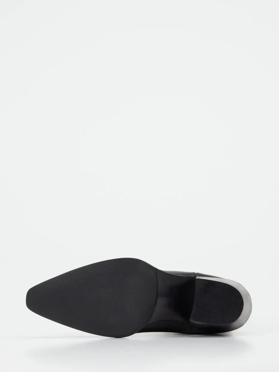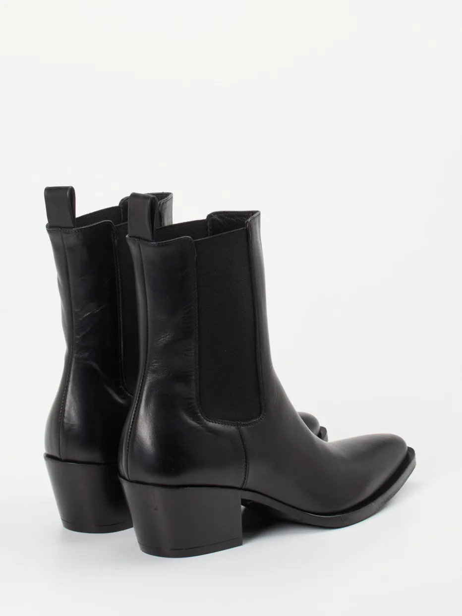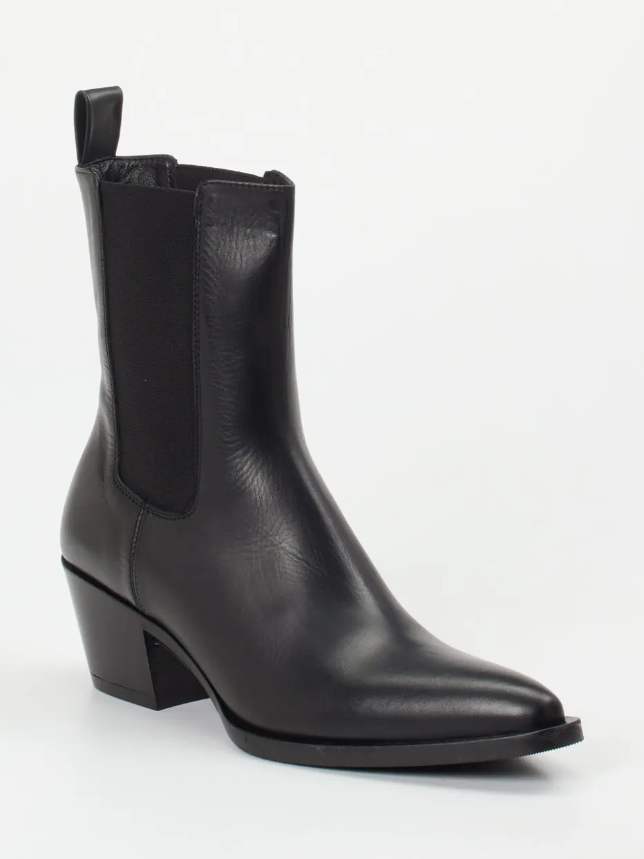 Diese Stiefelette verbindet hochwertiges Kalbleder mit puristischer Formensprache und einem dezenten Western-Flair. Ideal für stilbewusste Kombinationen im Alltag und Business.