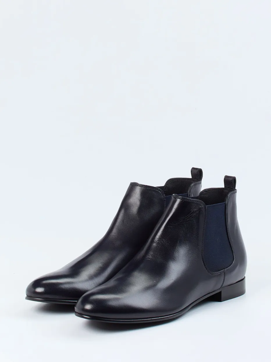 Konstantin Starke präsentiert diese schlichten, knöchelhohen Chelsea Boots auf einem leicht verschlankten Leisten. Das dunkelblaue Lammnappaleder ist wunderbar weich und hat eine edle Ausstrahlung. Dekorativ und praktisch zugleich sind die beiden typischen Elasteinsätze. Sie bieten ebenso wie die Leder-Gummisohle einen angenehmen Tragekomfort. Eine schicke und feminine Stiefelette mit einem Hauch an Sportlichkeit!