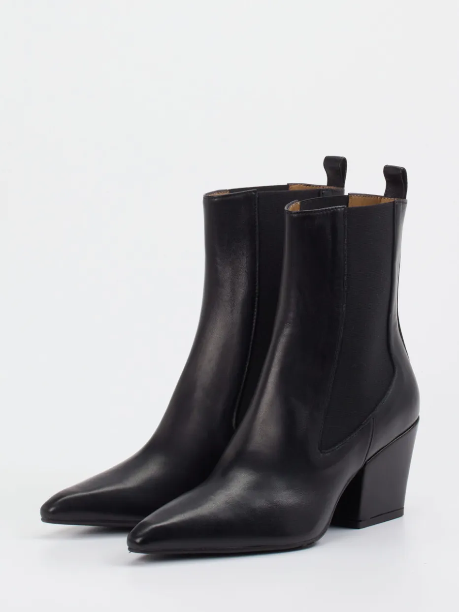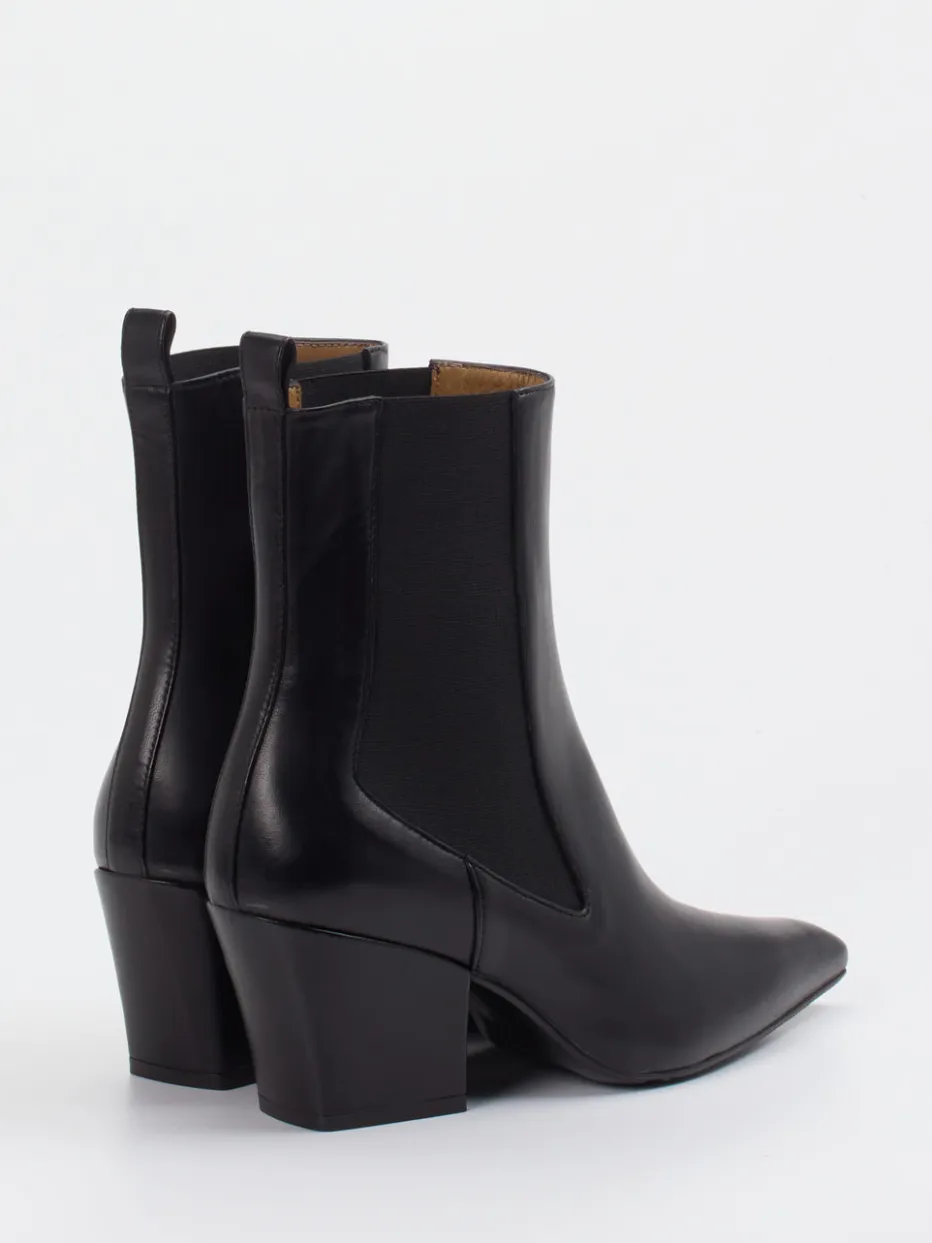 Aus geschmeidigem Lammleder gefertigt, vereint diese Chelsea-Stiefelette markanten Western-Charme mit femininer Eleganz – ein City-Statement für stilbewusste Looks.