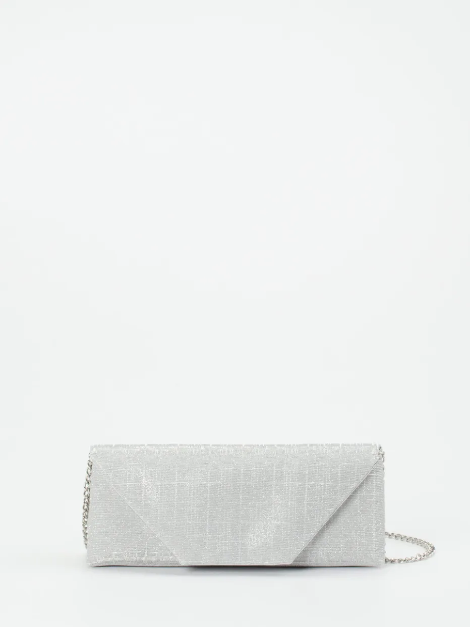 Diese elegante Clutch verbindet minimalistisches Design mit stilvollem Glitzereffekt für besondere Anlässe. Die feine Kette und klare Form unterstreichen ihre festliche Ästhetik.