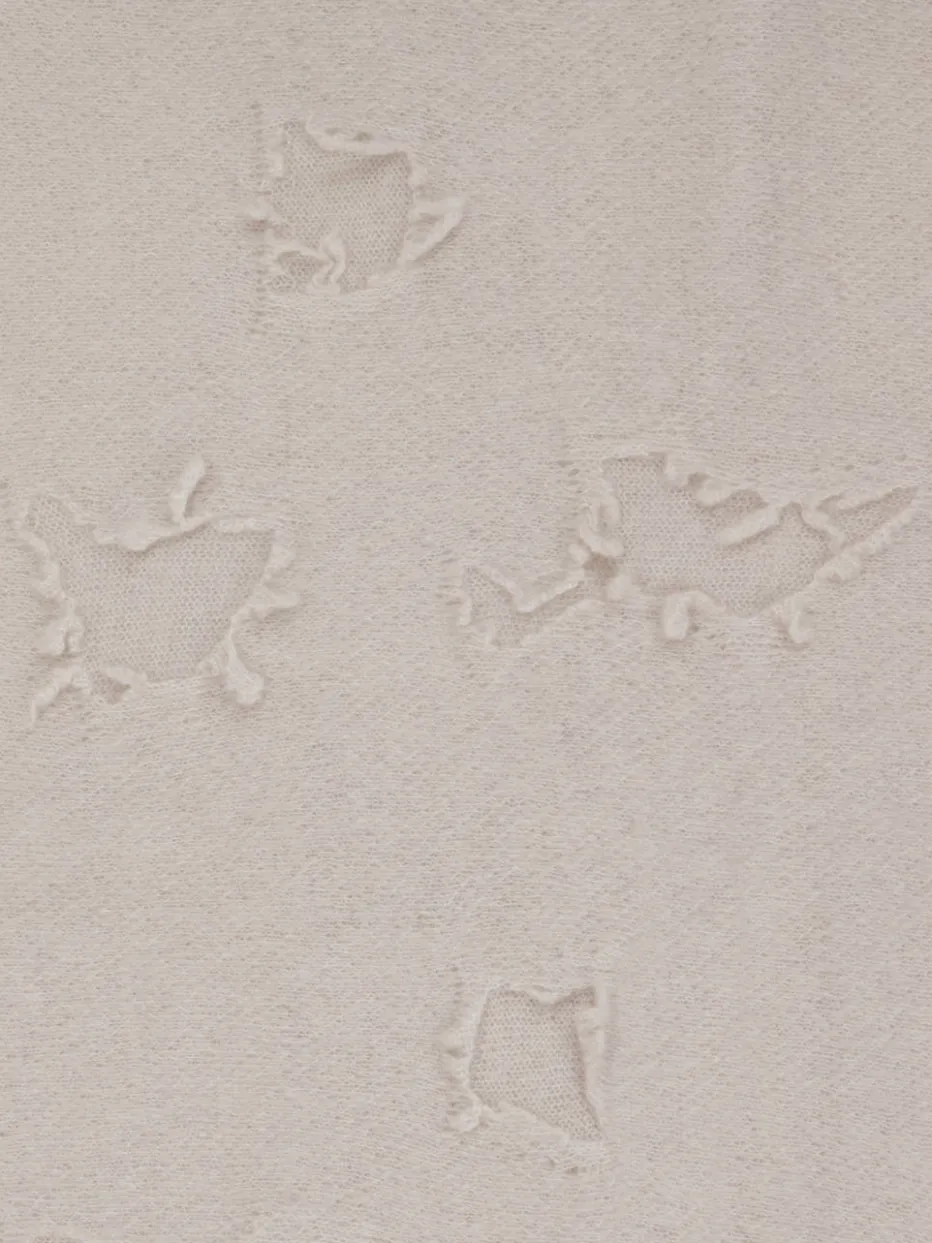 Weich, modern und trendorientiert: Der Fransenschal von Konstantin Starke kombiniert eine Destroyed-Optik mit dezenter Farbgebung im Streetstyle-Look.