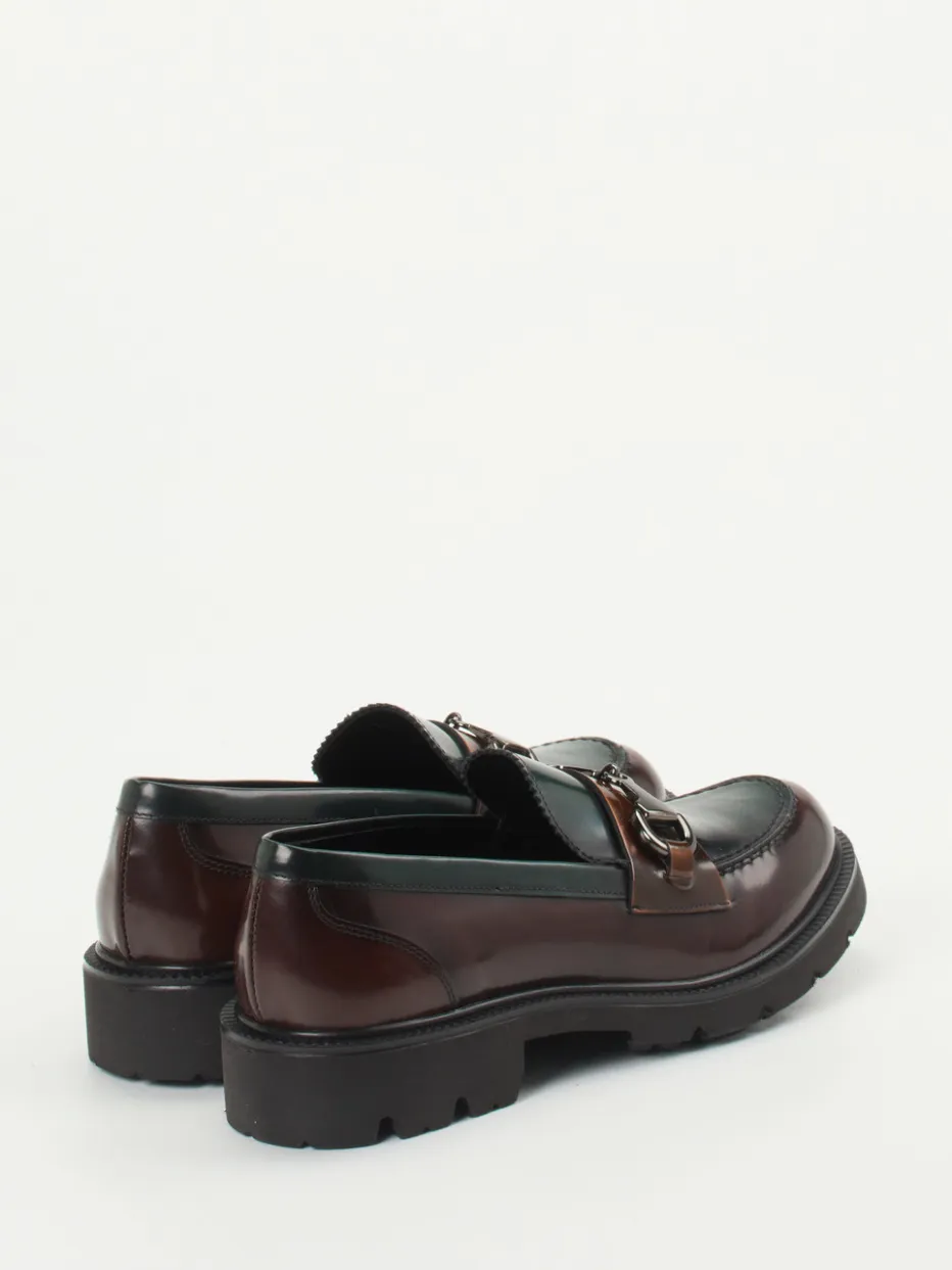 Dieser Loafer verbindet glänzendes Hochglanzleder mit einem ausdrucksstarken Bicolor-Look und liegt damit stilistisch genau im Trend zwischen Preppy und Dark Academia.