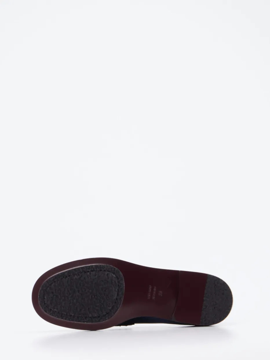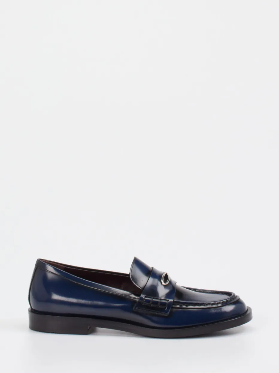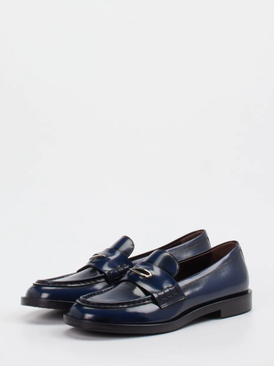 Dieser stilvolle Loafer verbindet glänzendes, tiefblaues Leder mit einer klassischen Silhouette und modernen Details – ideal für anspruchsvolle Business- wie Freizeitlooks.