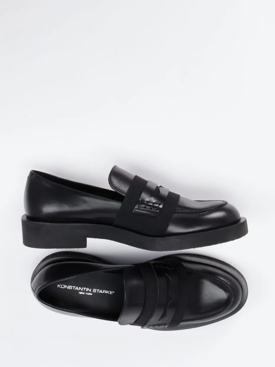 Konstantin Starke interpretiert den klassischen Damenloafer neu. Dieses Modell zeigt sich flach und klar konturiert – perfekt für dezente Business-Styles mit zeitgemäßem Twist.