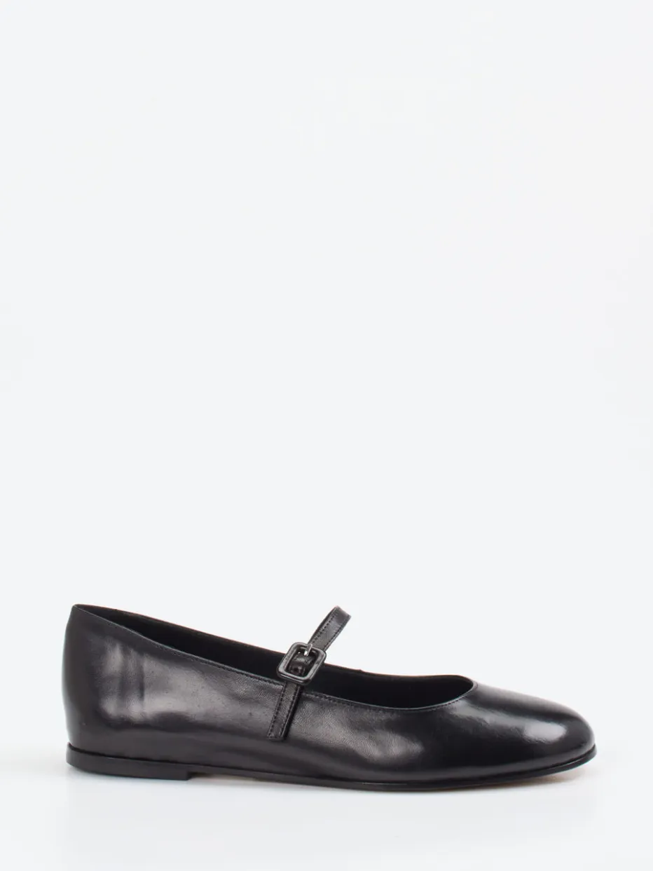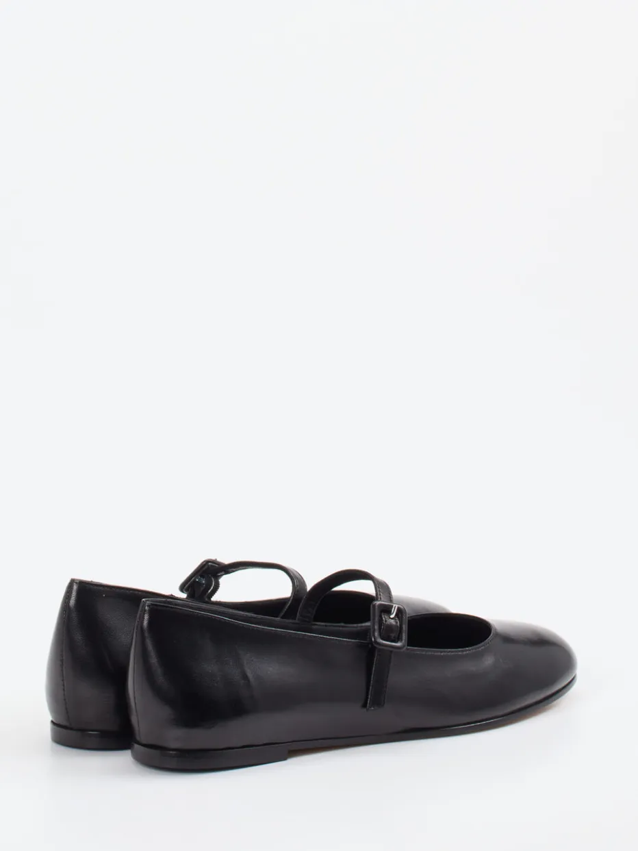 Dieser edle Mary Jane-Ballerina aus geschmeidigem Lammleder kombiniert klassischen Minimalismus mit subtiler Vintage-Eleganz. Perfekt für gehobene Freizeit- und Business-Looks.