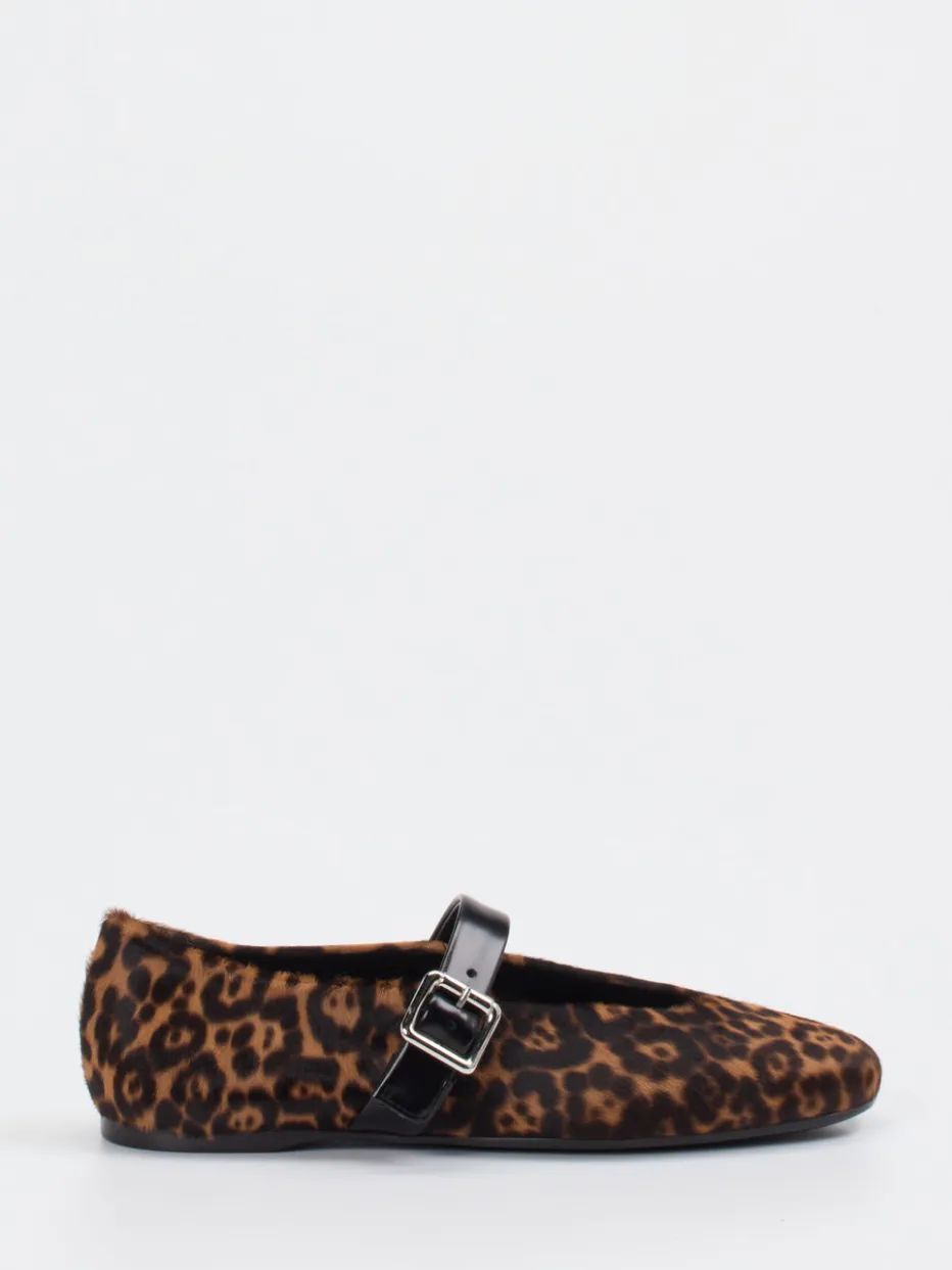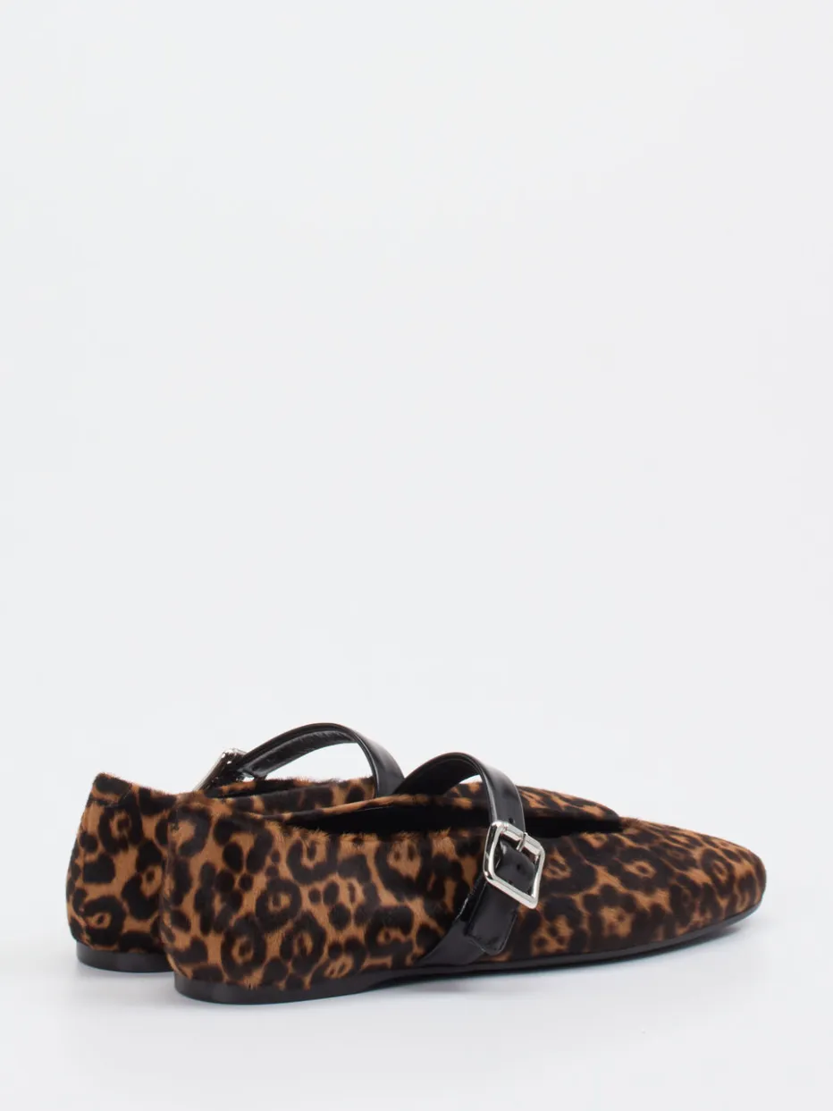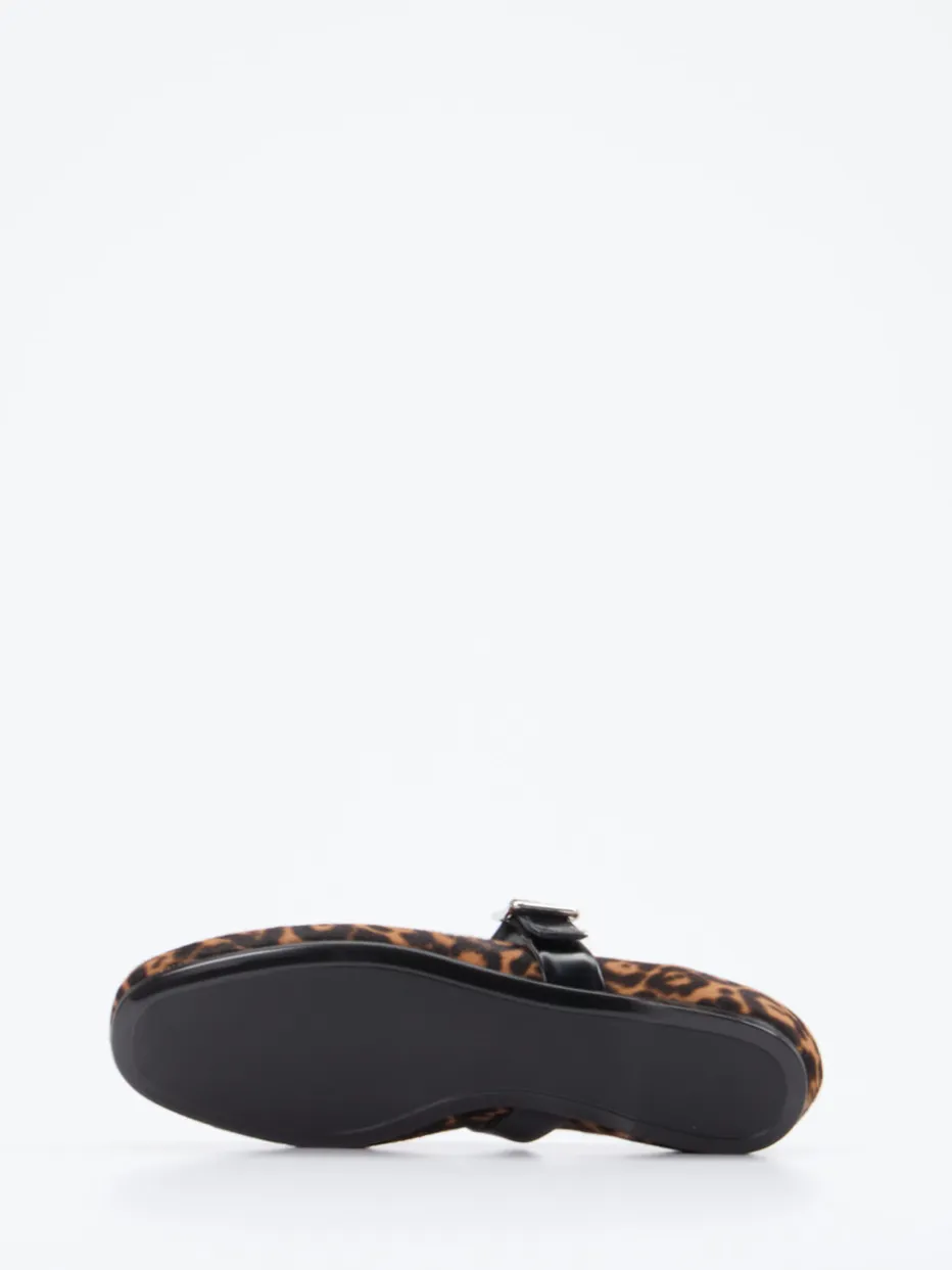 Feminine Raffinesse mit Retro-Flair.Konstantin Starke interpretiert den klassischen Mary-Jane-Ballerina neu. Diese flach geschnittenen Spangenpumps verbinden ein braunes Fell-Obermaterial in Leo-Optik mit samtartig-flacher Oberfläche. Der verstellbare Riemen aus Glattleder glänzt elegant und wird durch eine silberfarbene Metallschnalle akzentuiert. Die Gummisohle sorgt für angenehmen Komfort im Alltag oder bei langen Nächten. Dank Vintage- und Y2K-Anleihen sind die Schuhe ein klares Fashion-Statement – perfekt für trendbewusste Looks. Ein markentypischer Eyecatcher mit authentischem Strukturspiel und spürbarem Qualitätsanspruch.