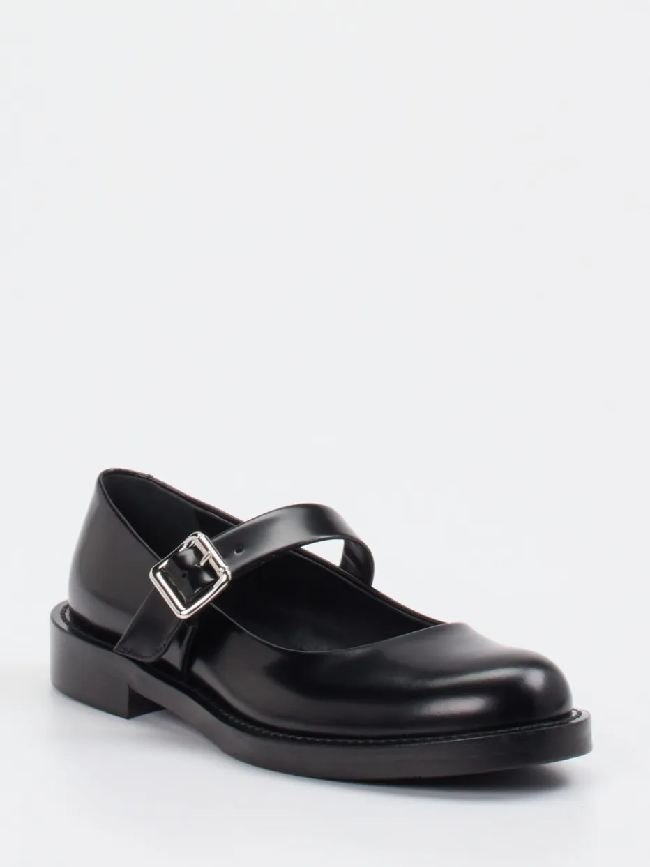 Mit minimalistischem Design und glänzendem Finish liefern diese Mary Janes aus Hochglanzleder eine stilvolle Referenz an die 90er – ideal für Preppy- und Business-Looks.