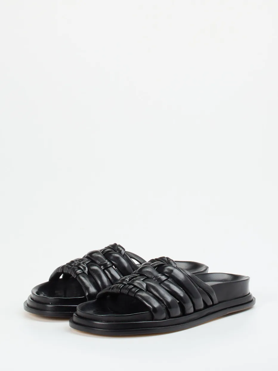 Gepolstertes Lammnappaleder und eine geflochtene Struktur verbinden sich hier zu einem modernen Slide mit dezentem Luxusgefühl – unkompliziert und stilbewusst.