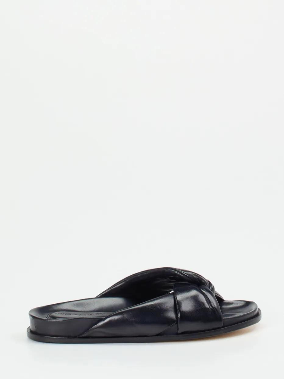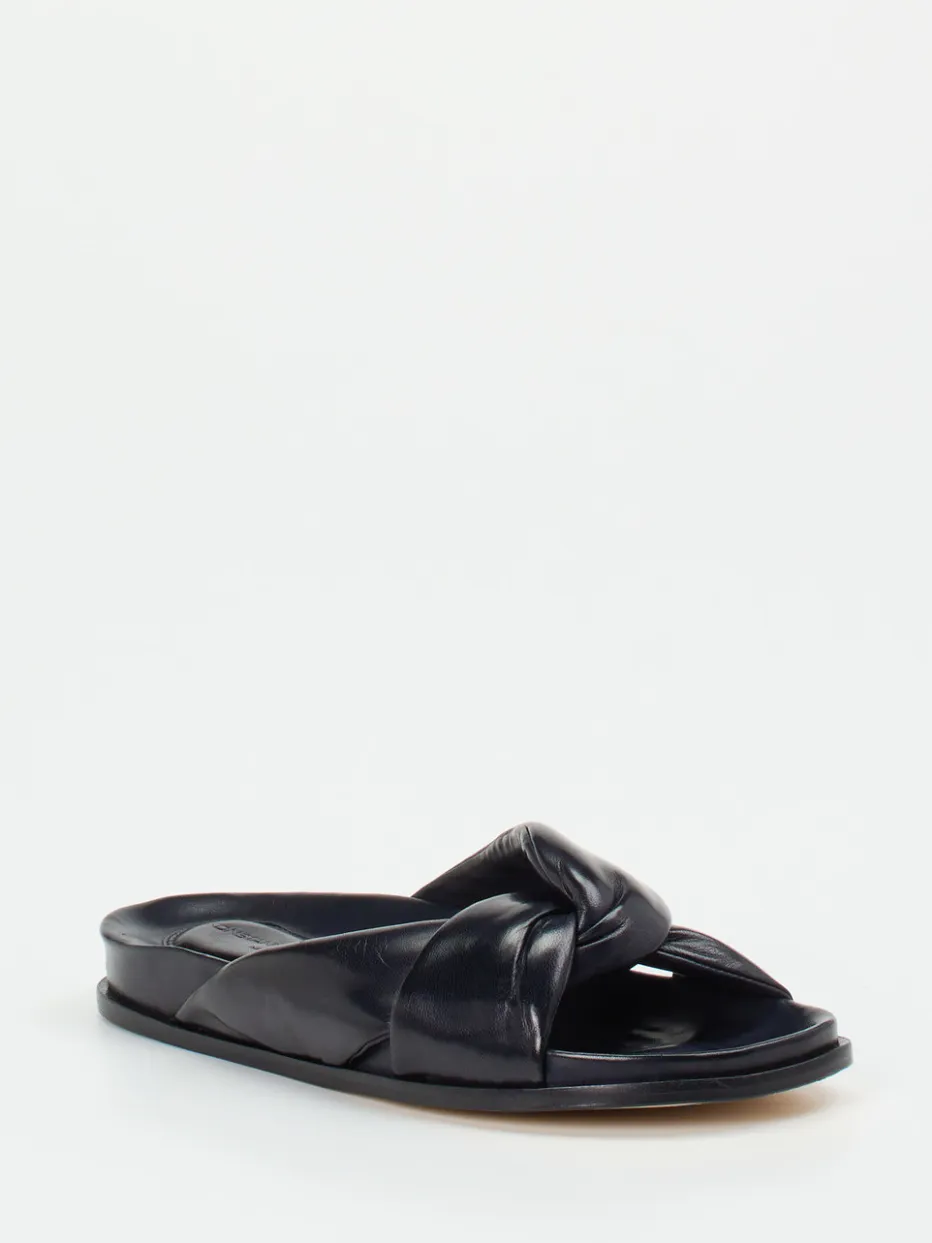 Diese hochwertig gearbeiteten Slides vereinen gepolsterten Komfort mit puristischem Design und sind ideal für stilbewusste Sommerlooks.