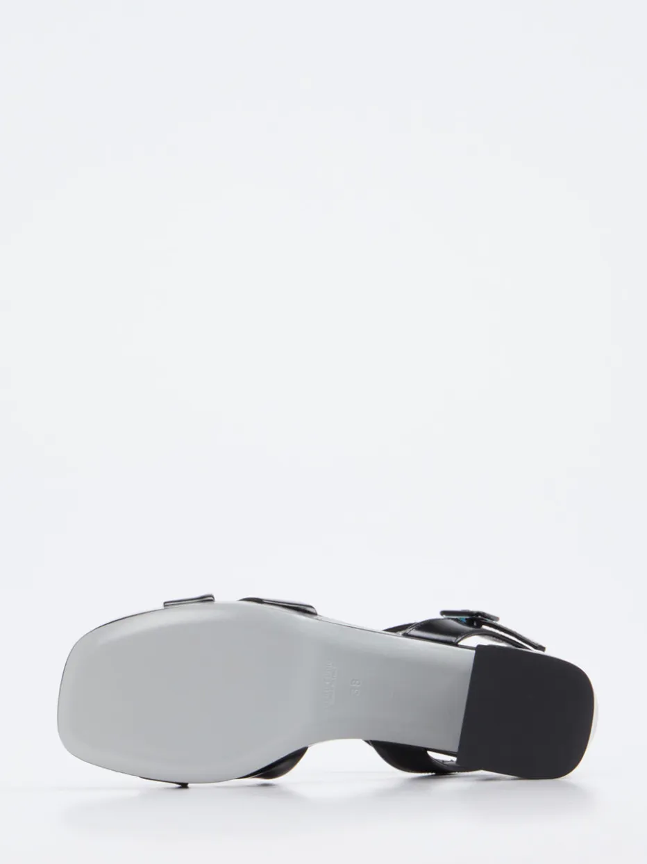 Minimalismus trifft Retro-Charme.Konstantin Starke interpretiert das Thema Plateau-Sandalen auf feminine Weise. Perfekt für gesellige Sommertage oder entspannte Abendveranstaltungen: Diese Plateau-Sandalen aus schwarzem Hochglanzleder überzeugen durch eine edel glänzende Oberfläche und einen blockigen Absatz mit 6,5 cm Höhe. Gekreuzte Riemen und ein verstellbarer Knöchelriemen sorgen für sicheren Halt und einen stilvollen Look. Die durchgängige Plateausohle sowie das weich gepolsterte Fußbett maximieren den Tragekomfort. Inspiriert vom Retro-Trend der 70er, trifft das Design den Nerv des Platform Revival. Ein stilsicherer Begleiter mit luxuriöser Ausstrahlung und charakteristischer Linienführung.