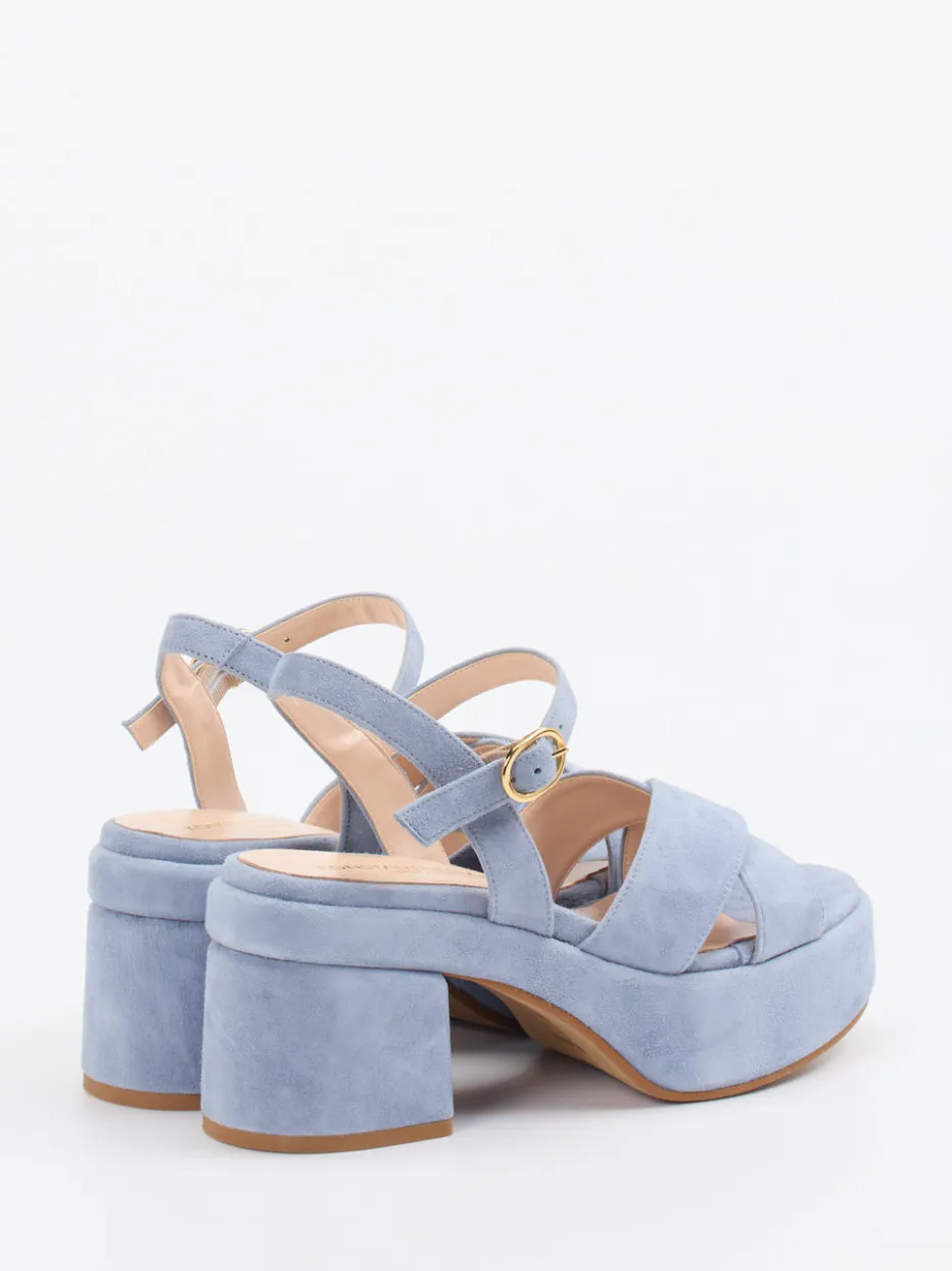 Ein stilvoller Auftritt gelingt mit dieser Plateau-Sandalette aus samtigem Veloursleder – perfekt für alle, die modische Statements im Retro-Look schätzen.