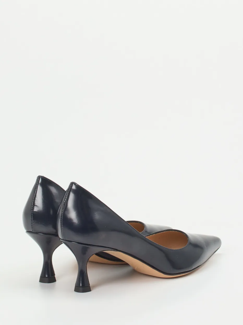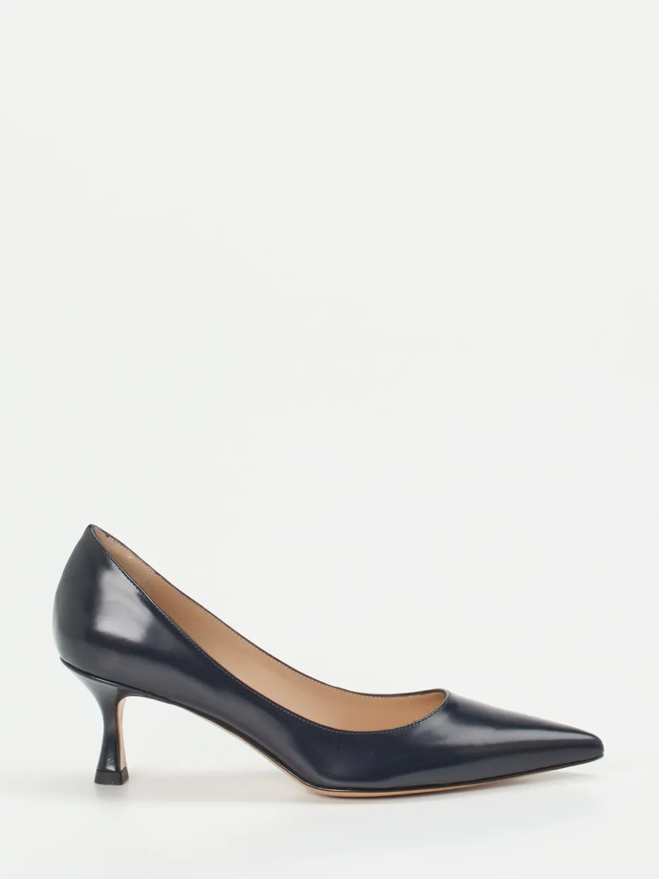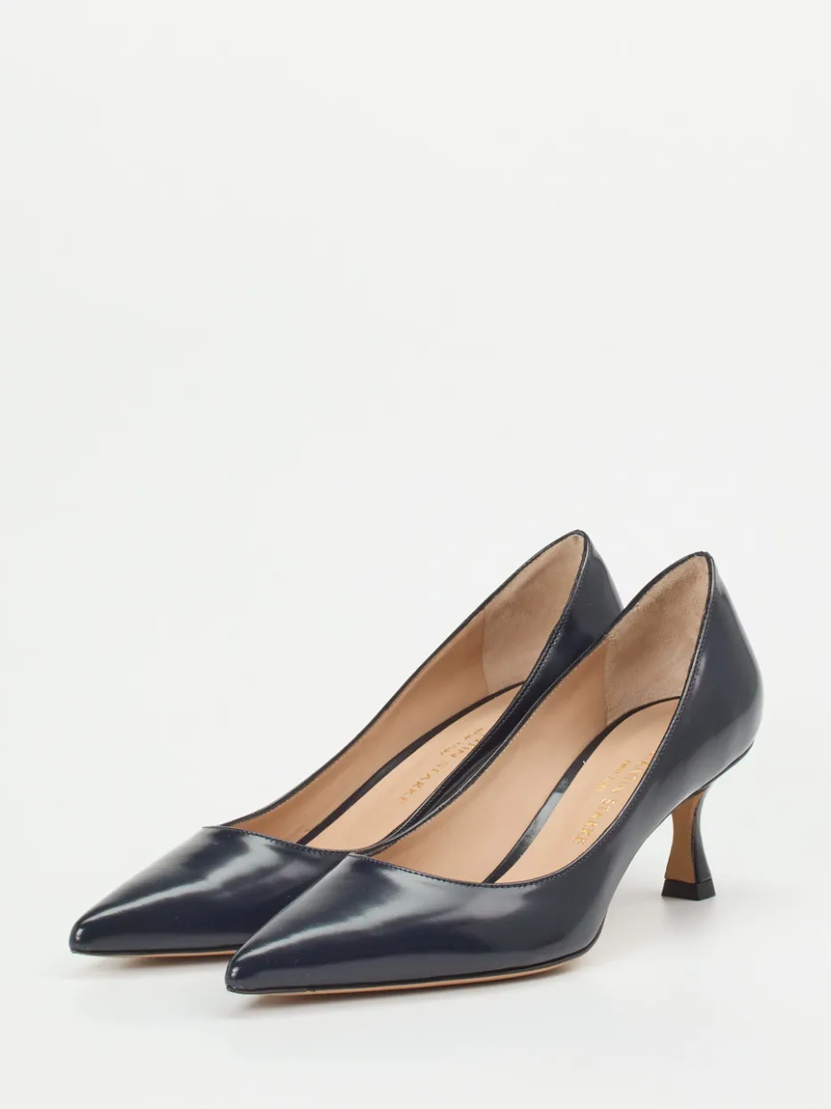Eleganz im Tintenblau.Konstantin Starke präsentiert einen Pumps für Damen mit stilvollem Anspruch. Ideal für formelle Anlässe oder den Business-Alltag bietet dieser Kitten Heel dank leicht gepolsterter Innensohle hohen Komfort. Gefertigt aus edlem Hochglanzleder mit leichtem Glanz und Ton-in-Ton-Nähten, tritt das Modell in tiefem Blau besonders elegant in Erscheinung. Die klassische, spitze Form und der lederbezogene Absatz greifen den Vintage-inspirierten Kitten-Heel-Trend auf. Perfekt kombinierbar zu cremeweißer Seidenbluse oder Navy-Handtasche. Ein femininer Klassiker mit moderner Linienführung und leiser Raffinesse.