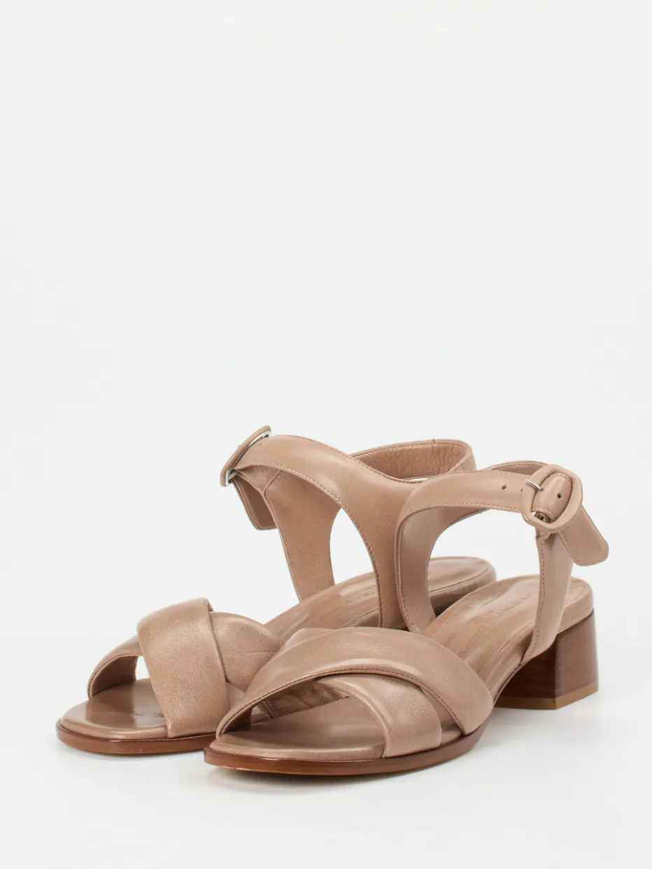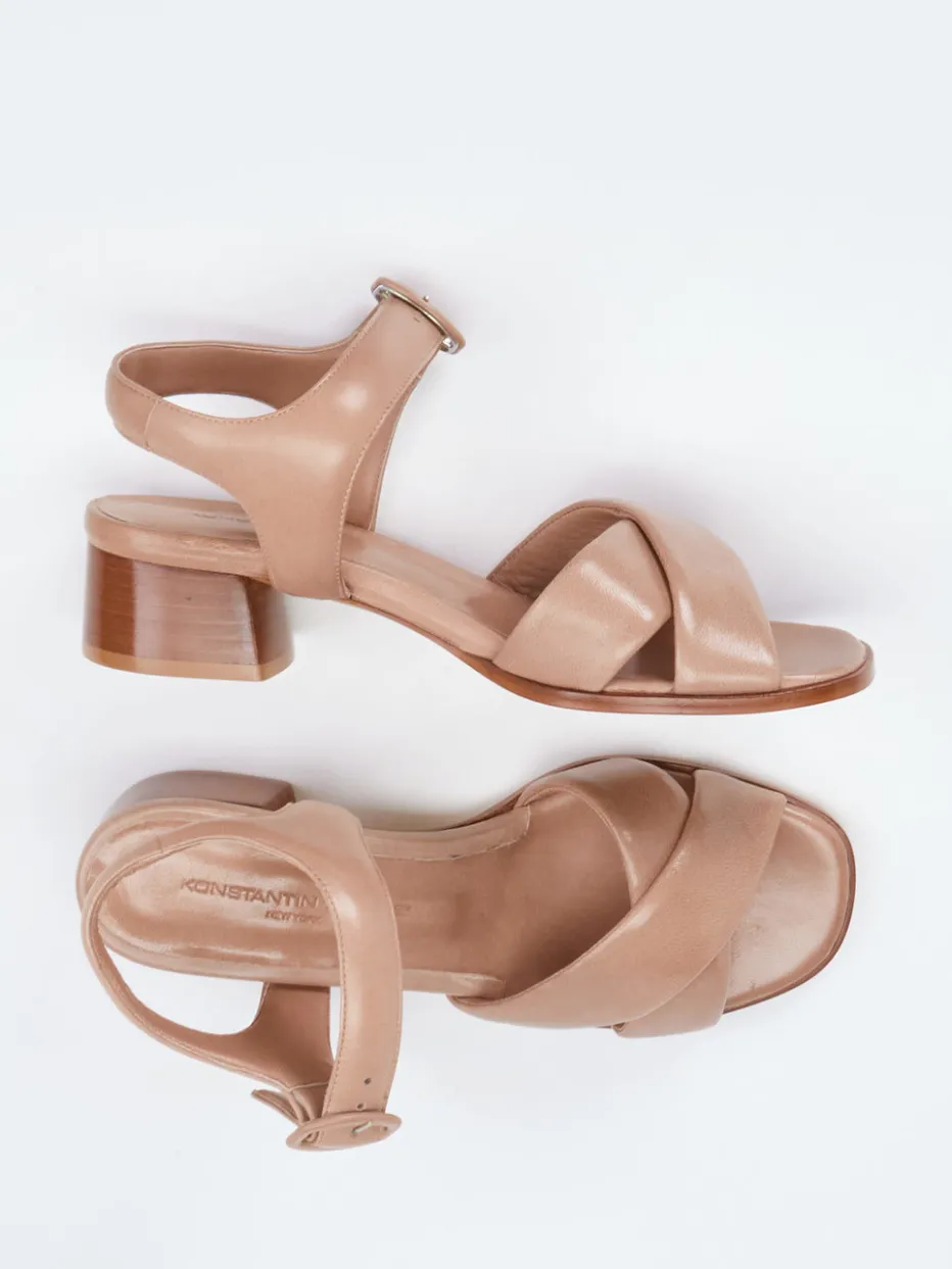 Reduziert auf das Wesentliche.Konstantin Starke präsentiert eine feminine Riemchensandale für Damen. Die Kombination aus samtigem, rehbraunem Lammleder mit matter Oberfläche und gekreuzten Vorderfußriemen erfüllt stilbewusste Ansprüche an Komfort und Design. Verstellbar durch eine tonige Dornschließe am Knöchel, bietet dieses Modell sicheren Halt. Der dezente Blockabsatz sorgt mit 3,5 cm Höhe für angenehmes Gehen – perfekt zwischen Business und Freizeit. Der klare Look entspricht dem „Quiet Luxury“-Trend und lässt sich ideal mit Soft-Neutrals und urbanem Chic kombinieren. Ein durchdacht gestaltetes Sommer-Essential mit zeitloser Raffinesse.