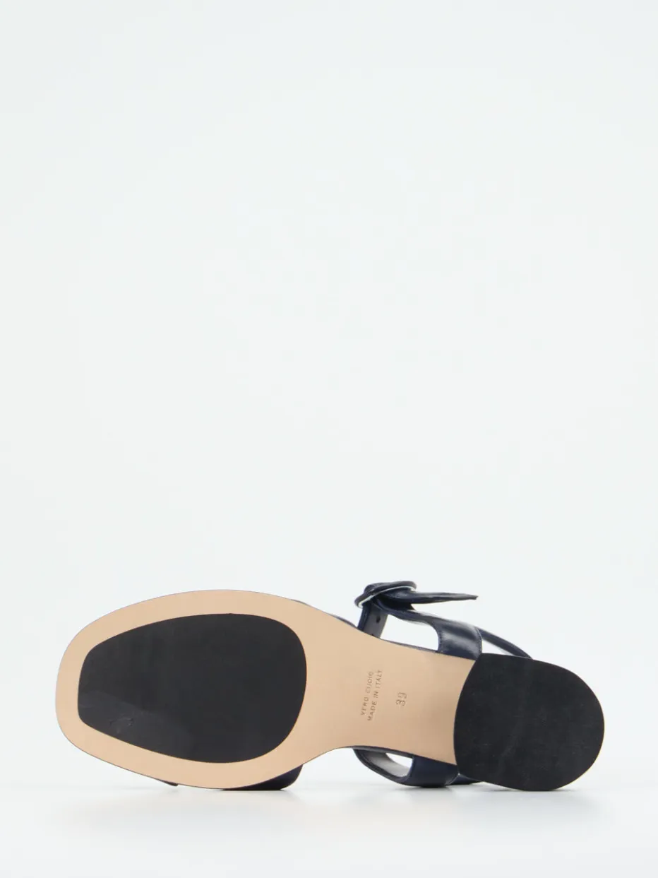 Für Tage, an denen ein femininer Look ebenso gefragt ist wie Tragekomfort, überzeugt das Modell durch weiches Lammleder mit edlem Glanz. Die überkreuzten Riemen und der individuell verstellbare Knöchelriemen fügen sich harmonisch in das minimalistische Design. Ein stabiler Blockabsatz mit 3,5 cm Laufhöhe sowie die gepolsterte Innensohle garantieren angenehmes Gehen – auch bei langem Einsatz. In tiefem Tintenblau gehalten, passen die offen gehaltenen Schuhe ideal zum Quiet Luxury Trend. Besonders gut kombinierbar mit fließenden Stoffen oder Ton-in-Ton-Accessoires.