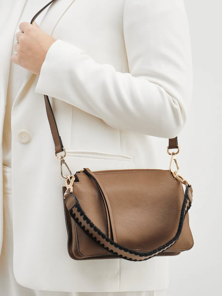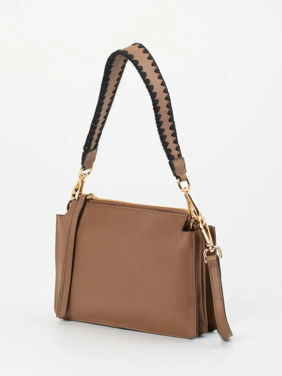 Diese Schultertasche überzeugt mit strukturiertem Lammnappa und goldfarbener Hardware – eine zeitgemäße Ergänzung für minimalistische Alltags- und Business-Outfits.