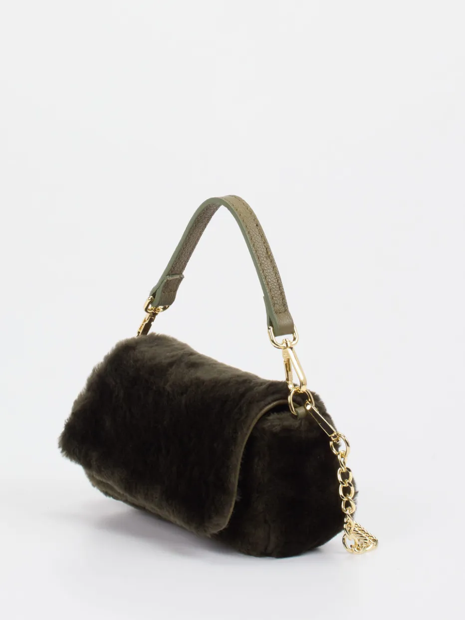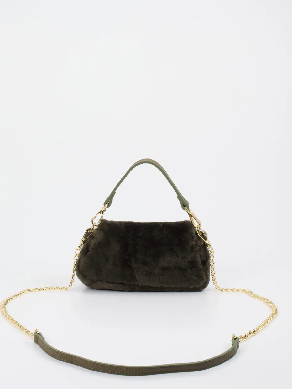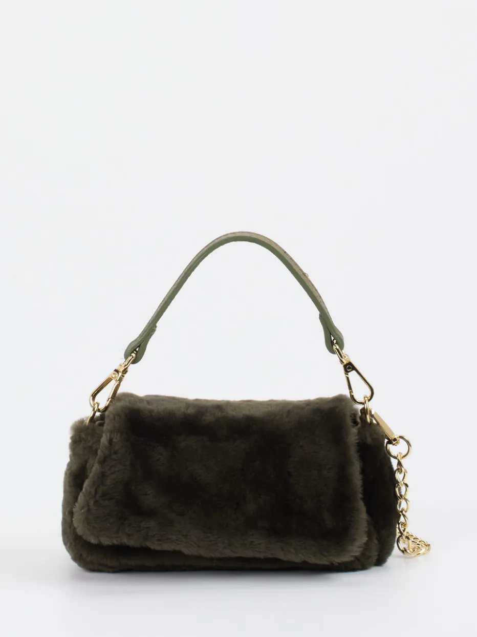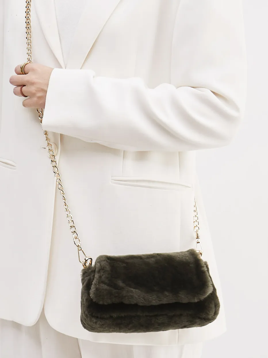 Damen Konstantin Starke – Schultertasche aus Kunstfell Dunkeloliv