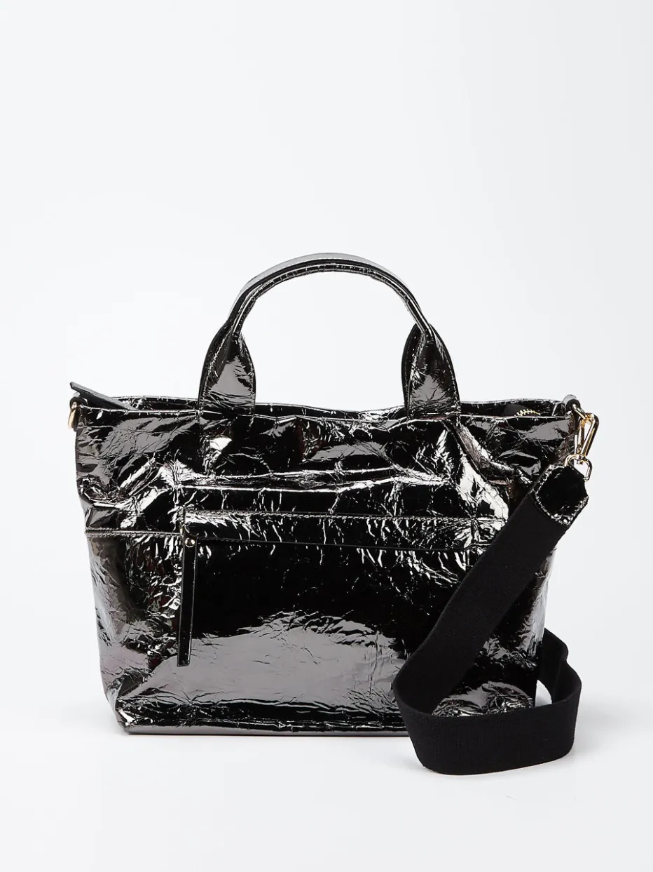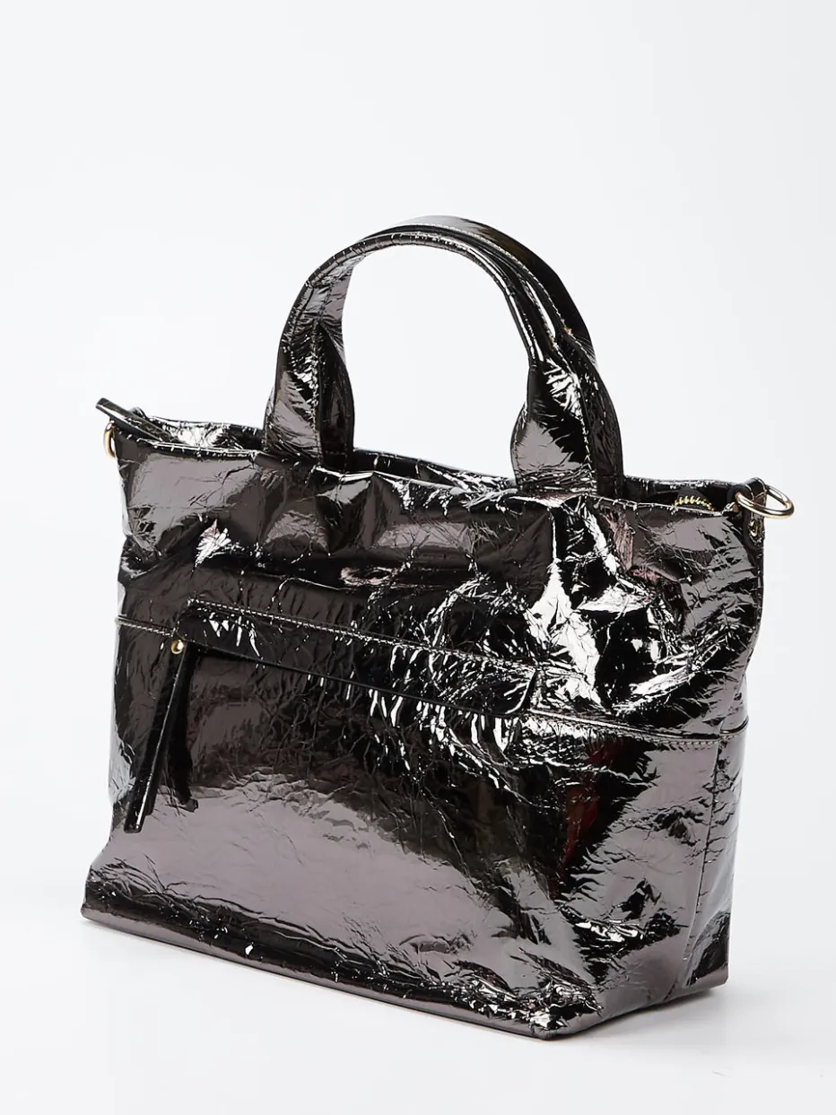 Die craquelierte Oberfläche mit Metallic-Finish setzt modische Akzente und verleiht urbanen Looks markante Eleganz.