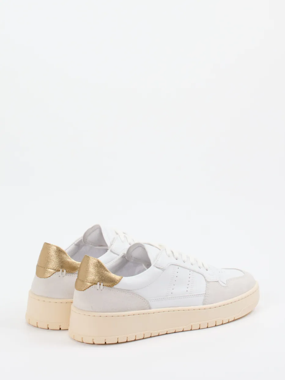 Ein klar designter Low-Top-Sneaker mit hochwertiger Lederkombination, veredelt durch eine goldene Metallic-Fersenkappe. Ideal für minimalistische Looks mit sportivem Twist.