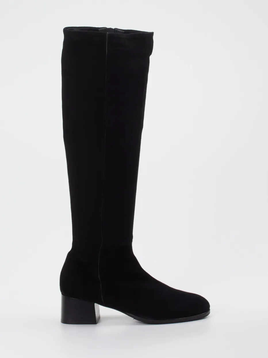 Dieser kniehohe Damenstiefel vereint elastisches Stretchvelours mit einem klaren Designansatz – ideal für stilvolle Auftritte zwischen Arbeitsplatz und City-Life.